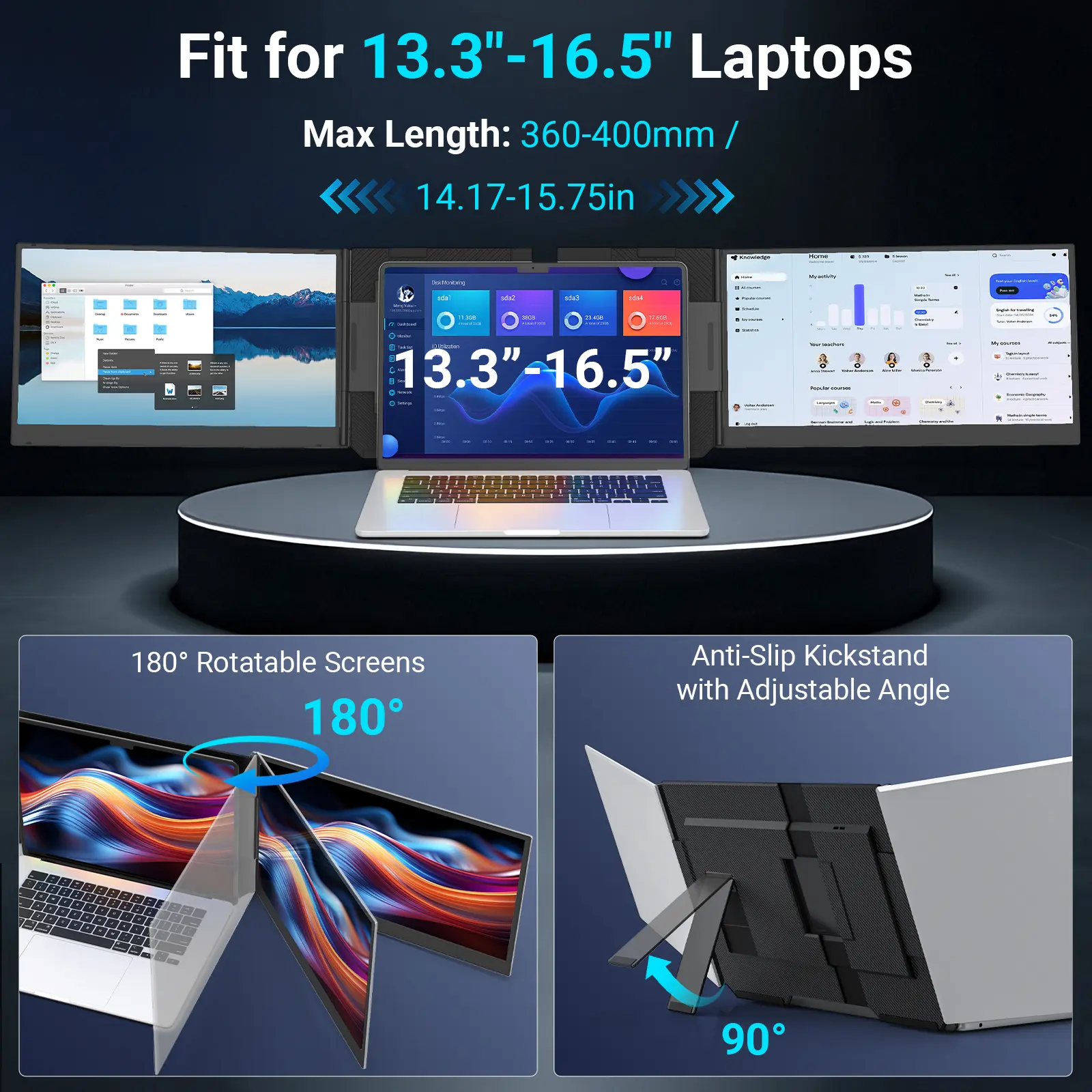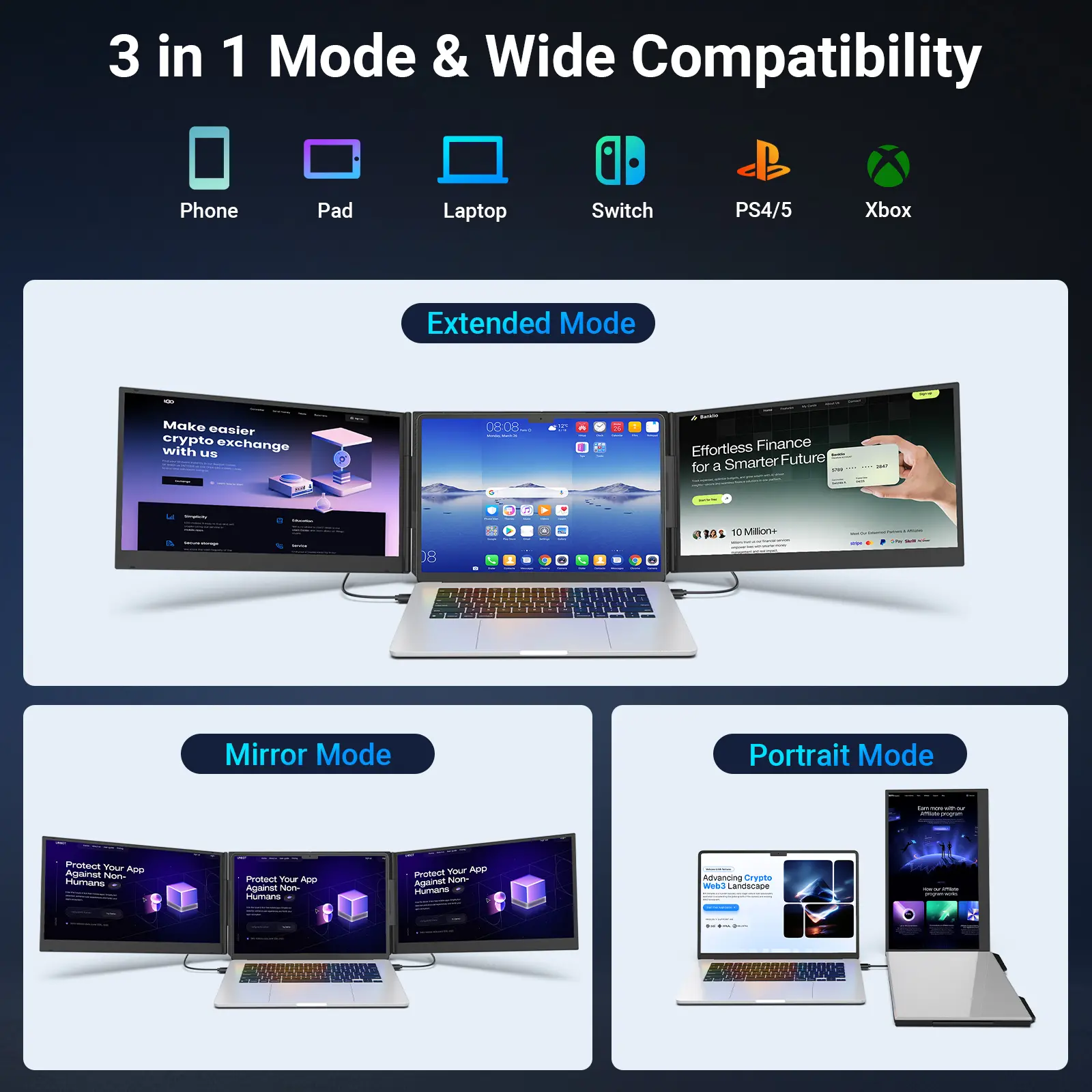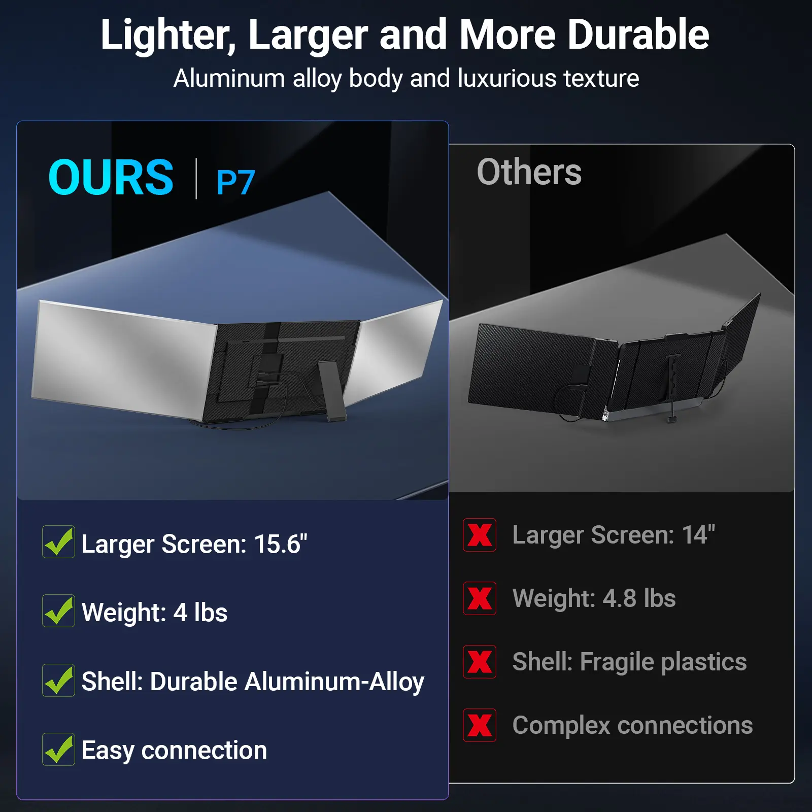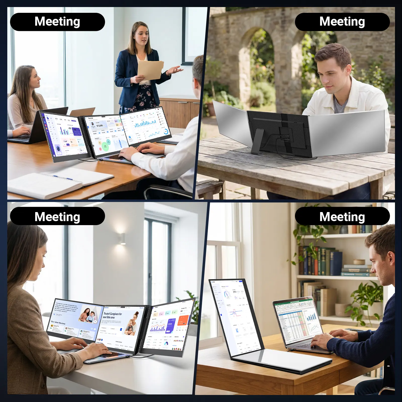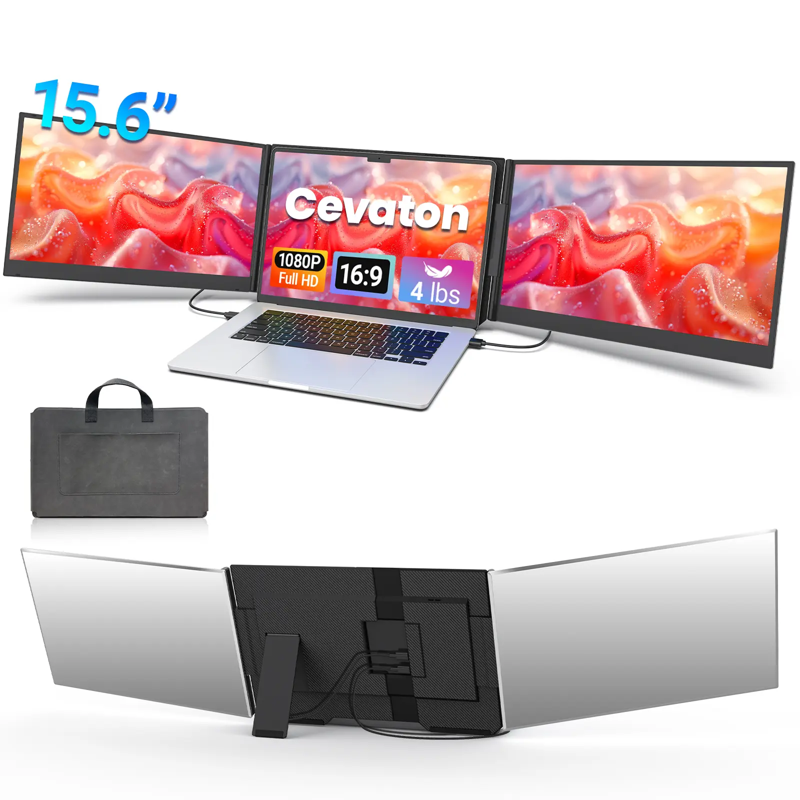 ·【Dual-Screen Boost for 300% Efficiency】Transform your workflow with the ZUMWALT P7 portable monitor for laptop that instantly expands your laptop into a dual-screen setup. Designed for multitasking. Expand your screen space to work on multiple applications simultaneously—Break free from tab switching. Enjoy up to 300% efficiency boost. This triple portable laptop monitor designed for on-the-go professionals who need more space without more clutter. Elevate your efficiency anywhere.