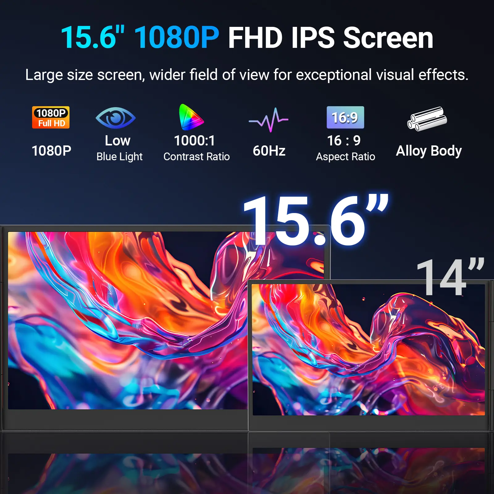 ·【15.6" FHD 1080P Larger Screen, Visual Excellence】Our laptop monitor extender featuring two 15.6" 1080P Ultra Slim FHD displays, provides a larger display area and a stylish appearance. Enjoy stunning visuals with 280 nits brightness and a 178° wide viewing angle. Perfect for triple-screen immersive visual in work or entertainment—Experience vibrant, true-to-life colors. This portable laptop monitor is designed for seamless collaboration and professionals multitasking on the go.