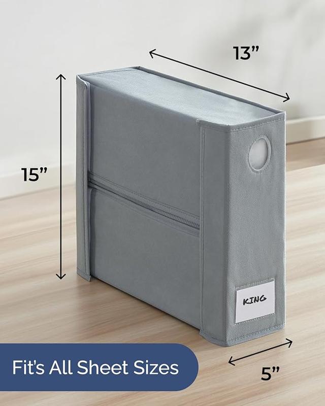 ·EASY TO LOAD, ACCESS & COLLAPSE FOR SPACE SAVING: Simply fold your sheets, place them in the center, zip, close and label – you’re done. Reinforced handles make it easy to pull from crowded shelves, while the dustproof design protects your linens. When not in use, each sheet organizer collapses flat to maximize storage efficiency