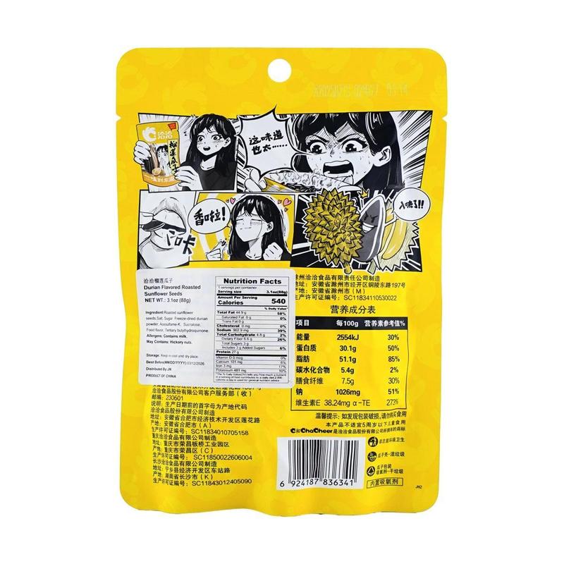 Enjoy this delightful treat anytime, anywhere. It's the perfect companion for movie nights, study sessions, or sharing with friends. Grab your bag of CHACHA Durian Sunflower Seeds today and transport your taste buds to the tropics! ✈️