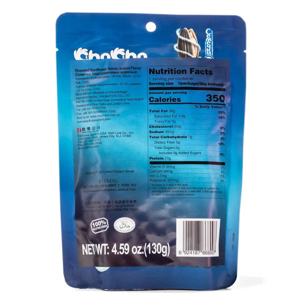 ChaCha Sunflower Seeds, Sea Salt Flavor are widely loved by people around the world. It is a kind of delicious natural snack that is impossible to put down. Perfectly roasted and seasoned with just the right amount of sea salt, it has the flavor that is irresistible. This is a great snack in between meals with a cup of tea, soda, or beer.