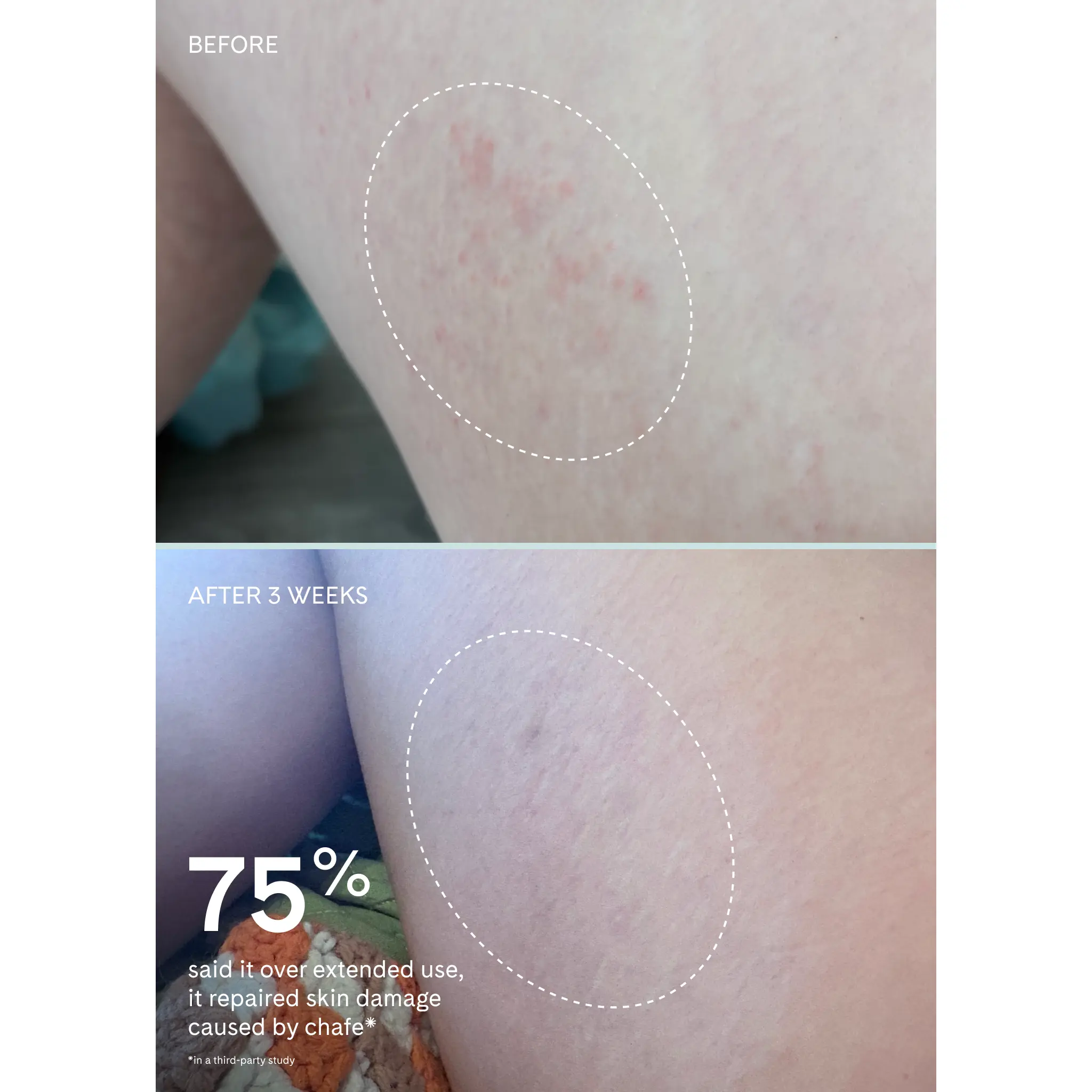 This has been a huge game changer. I no longer have to worry about my inner thighs chaffing! I love the beach and this product has made wearing a bathing suit so much more comfortable. I bring this to the beach with me. No more irritated raw skin!
