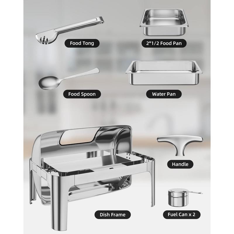 · 【Premium Stainless Steel Construction】This roll top chafing dish buffet set is meticulously crafted from top-grade stainless steel, delivering exceptional durability and easy cleaning for long-lasting use.