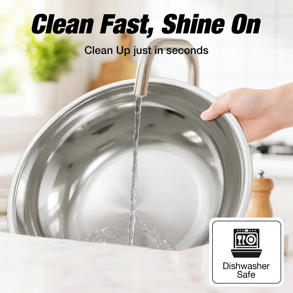 Made from food-grade thickened stainless steel with fully reinforced rims. The smooth, rounded edges are safe and comfortable to handle — designed for frequent use.