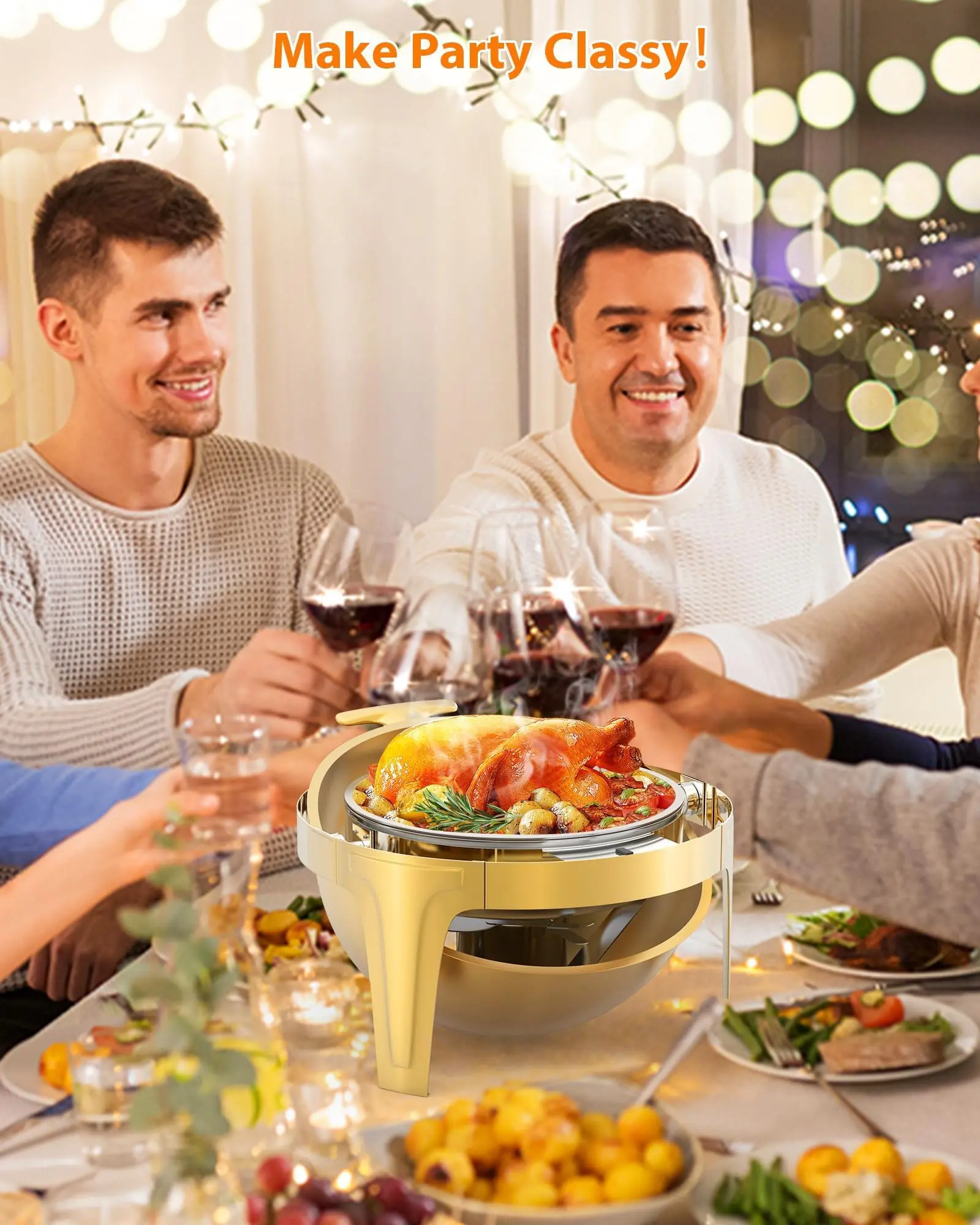 · Spacious 6.3-Quart Capacity: This commercial-grade chafing dish holds up to 6.3 quarts of food, ideal for serving 10-12 guests at weddings, holiday gatherings, or buffet lines. The deep stainless steel food pan securely stores entrees like pasta, meats, or vegetables without overcrowding. Compatible with standard-sized hotel pans for seamless integration into professional catering setups.