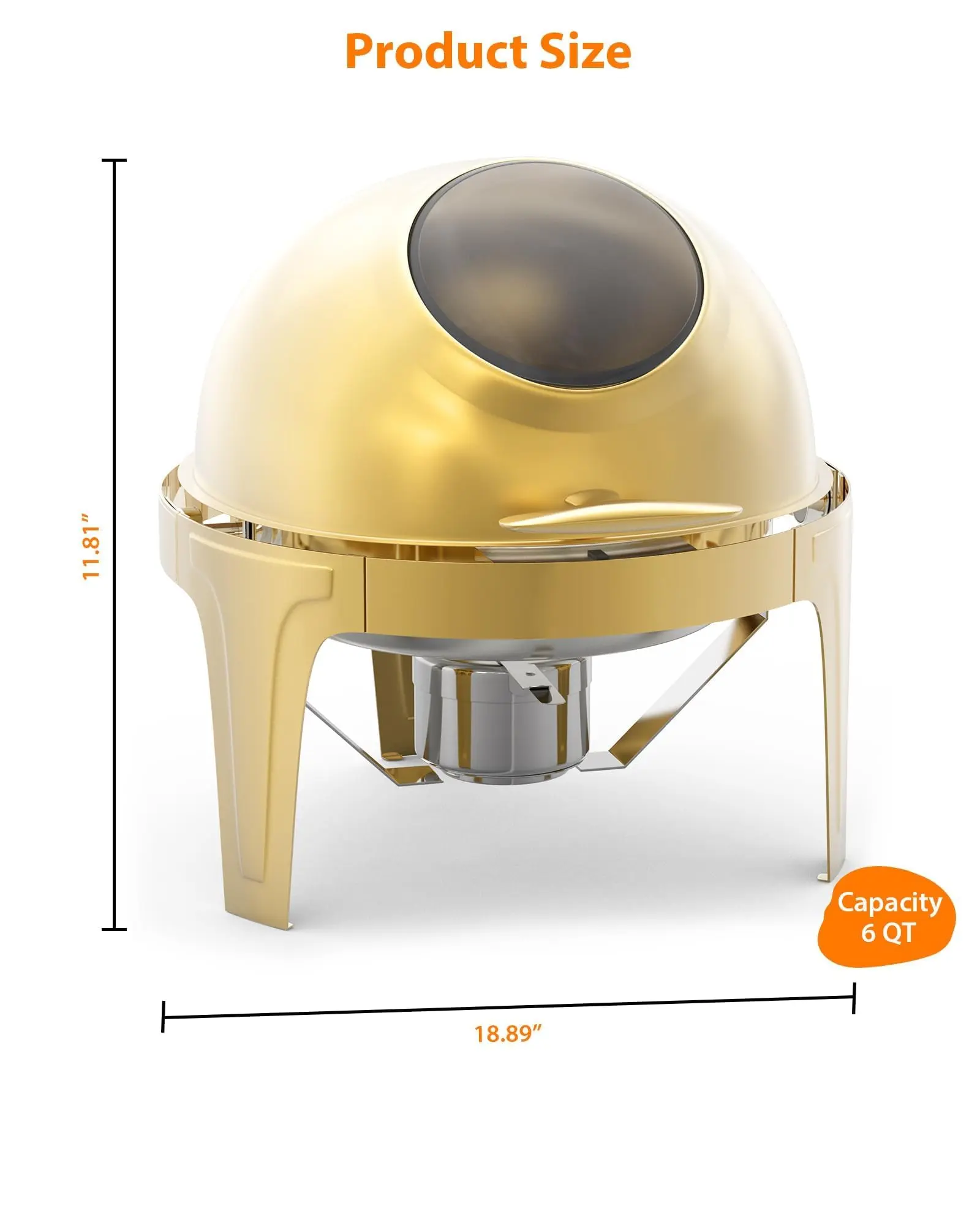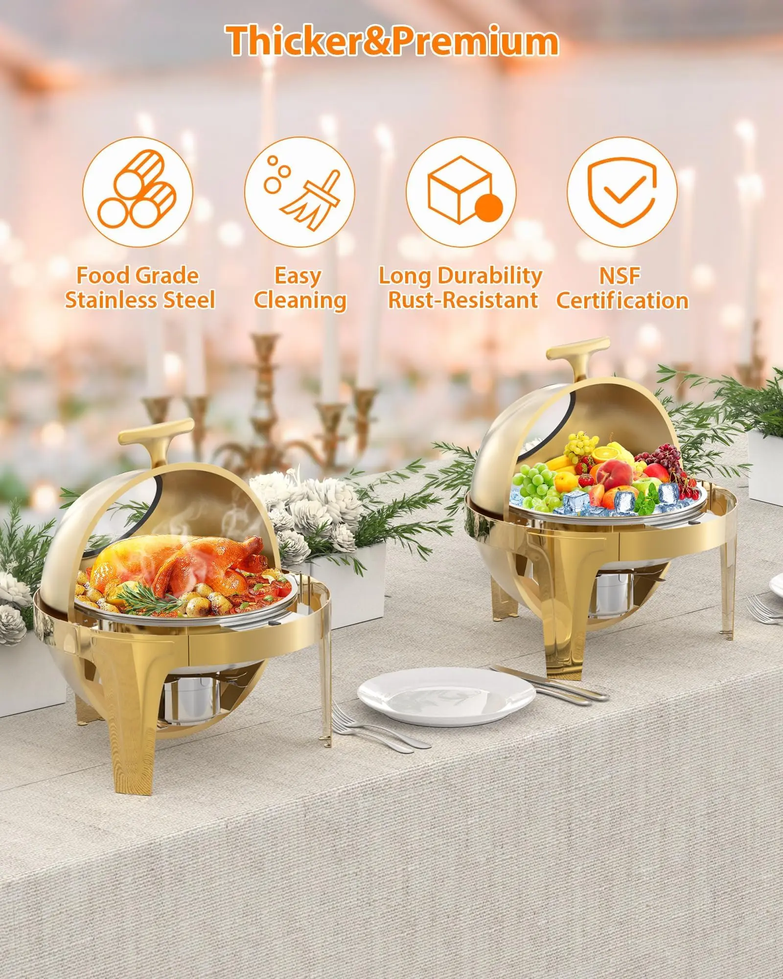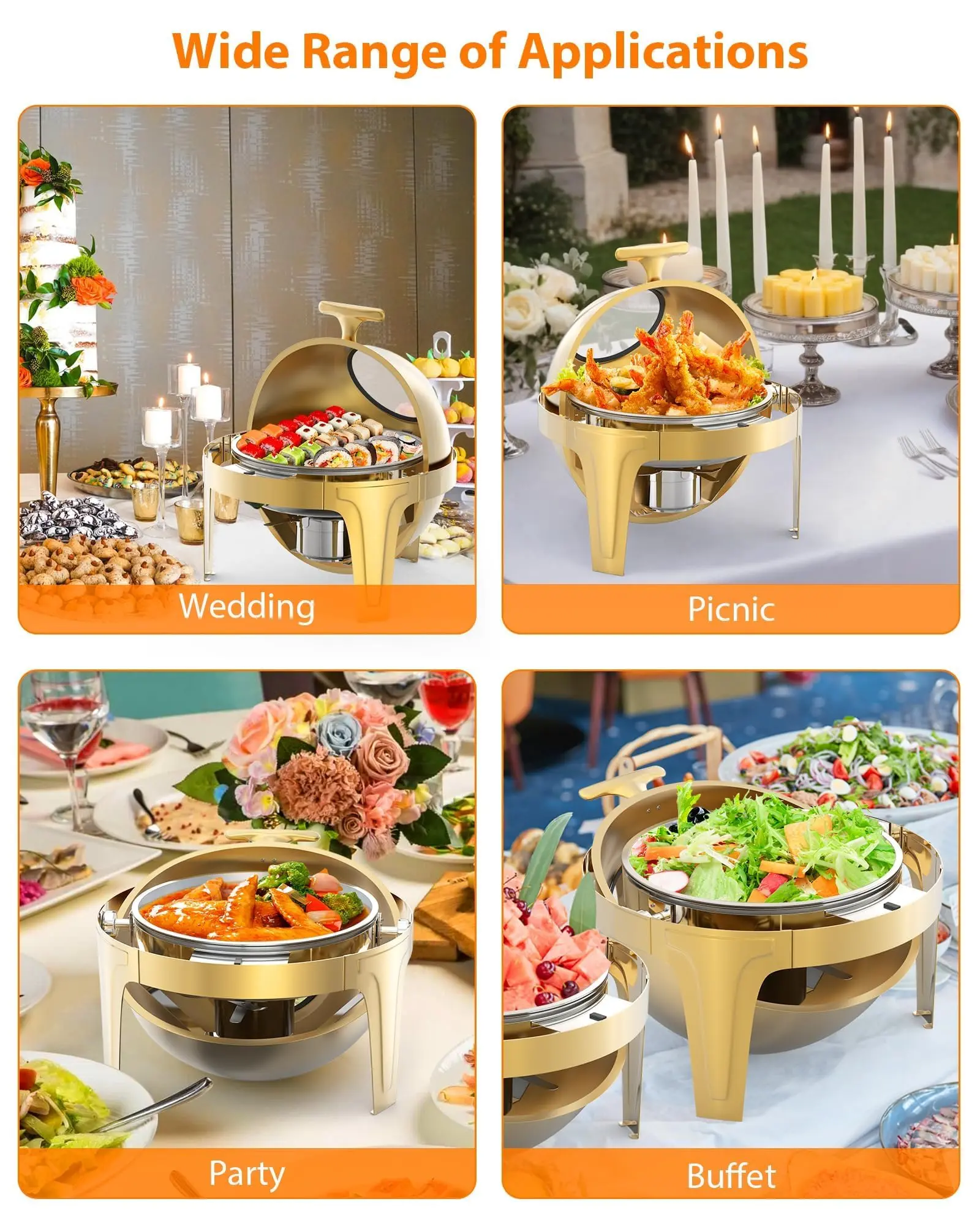 · Premium Stainless Steel Build: Constructed with rust-resistant 18/8 stainless steel and reinforced polycarbonate viewing window, this chafer withstands heavy-duty use in kitchens and event venues. Smooth roll-top hinges operate quietly under repeated use, while the scratch-resistant finish maintains a polished appearance for formal events.