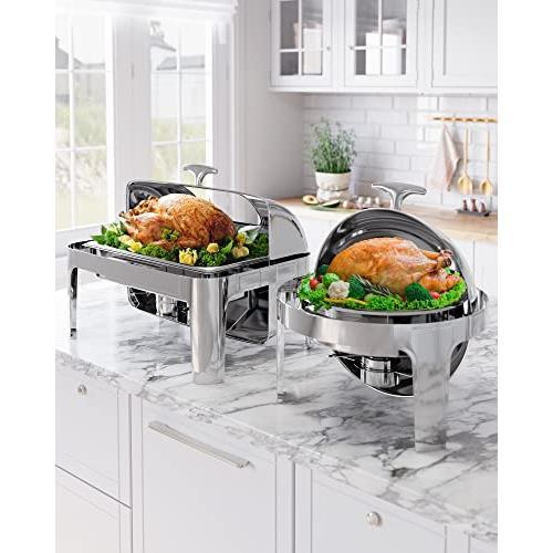 · 【Convenient Design】Equipped with an adjustable roll-top lid and T-shaped handle, our chafing dishes offer easy and quiet operation, making it convenient for guests to serve themselves without the risk of burns.