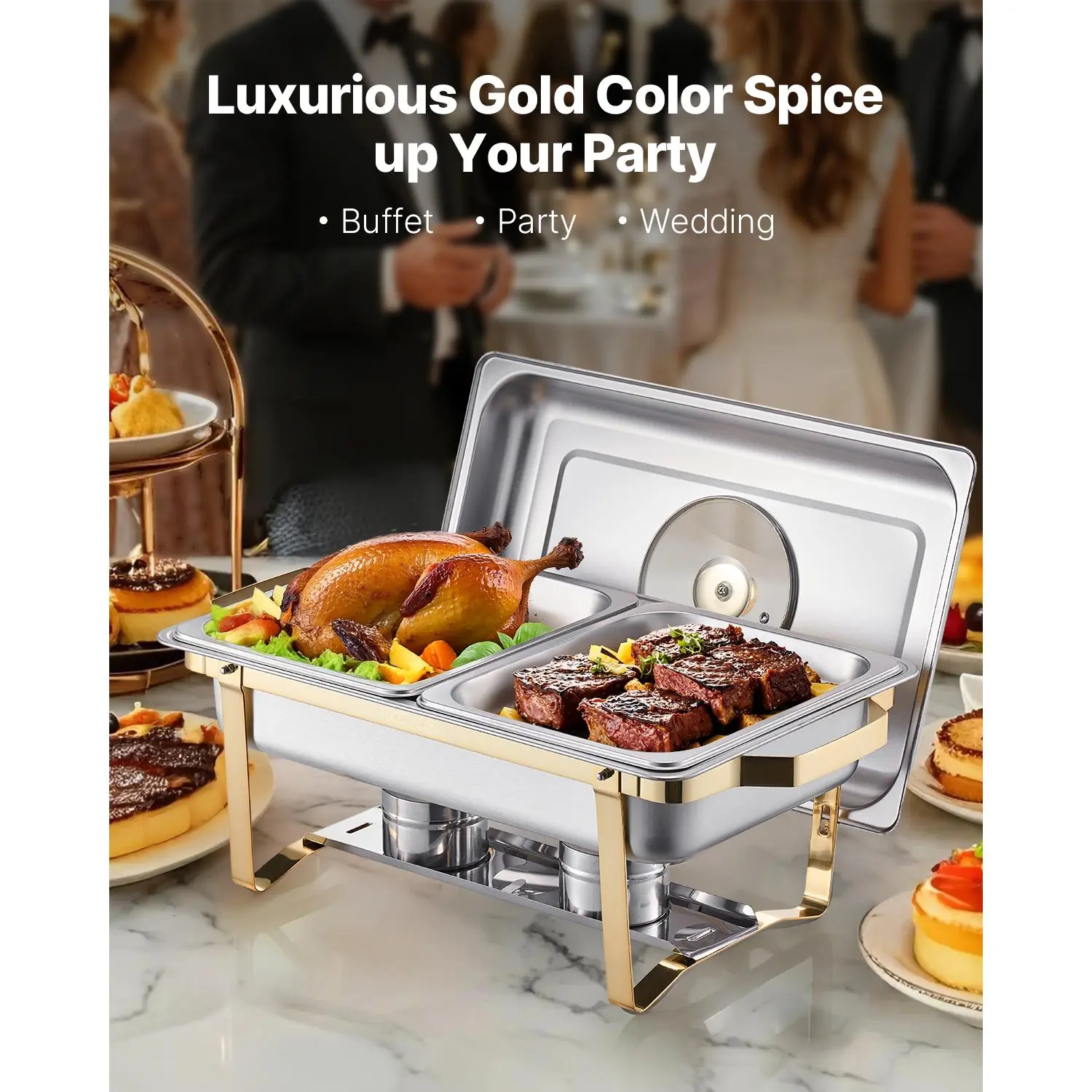 • Elegant Gold Finish: The luxurious gold color of this chafing dish warmer adds a sophisticated touch to any event. Whether it's a buffet, party, or wedding, this sleek design enhances your table setting and elevates the atmosphere