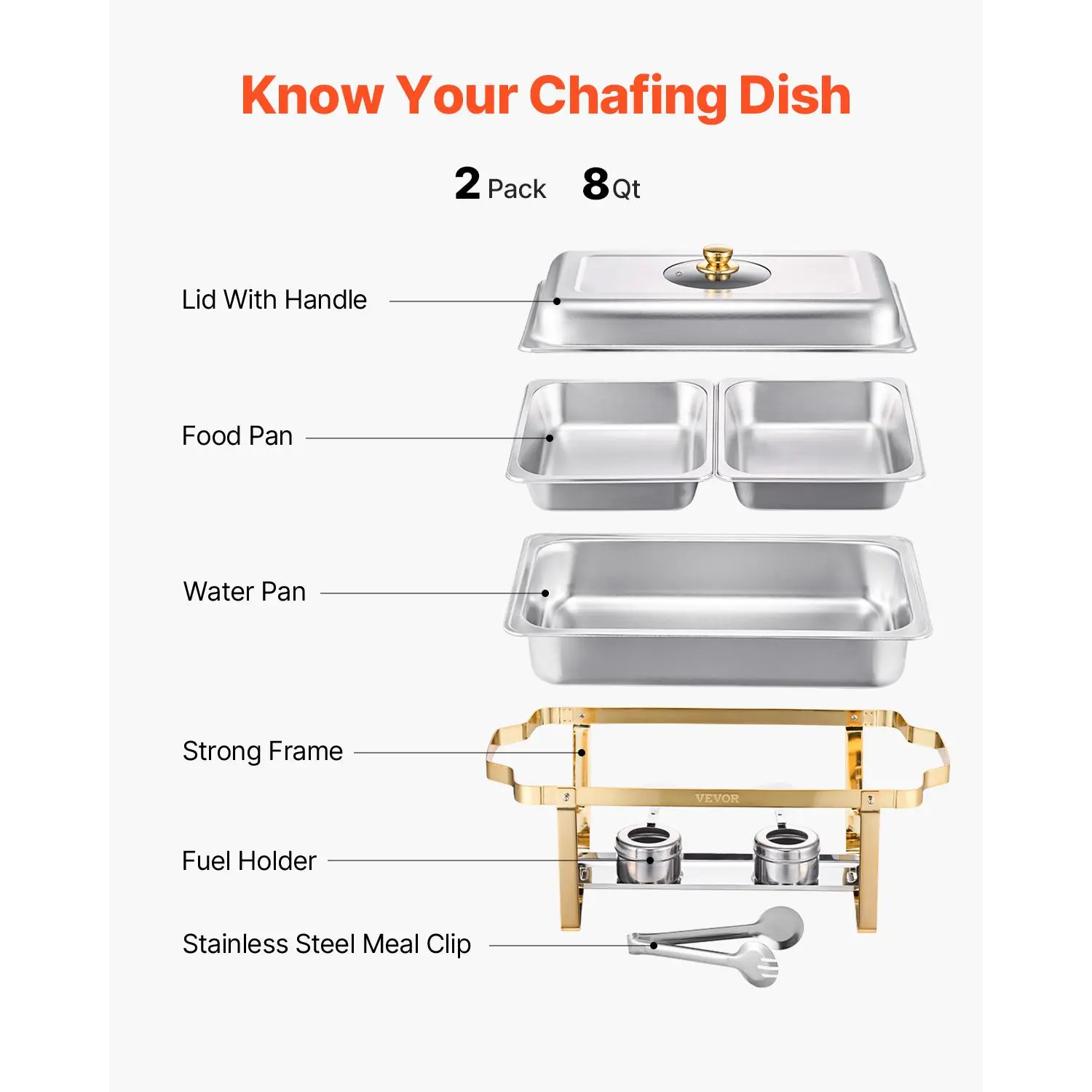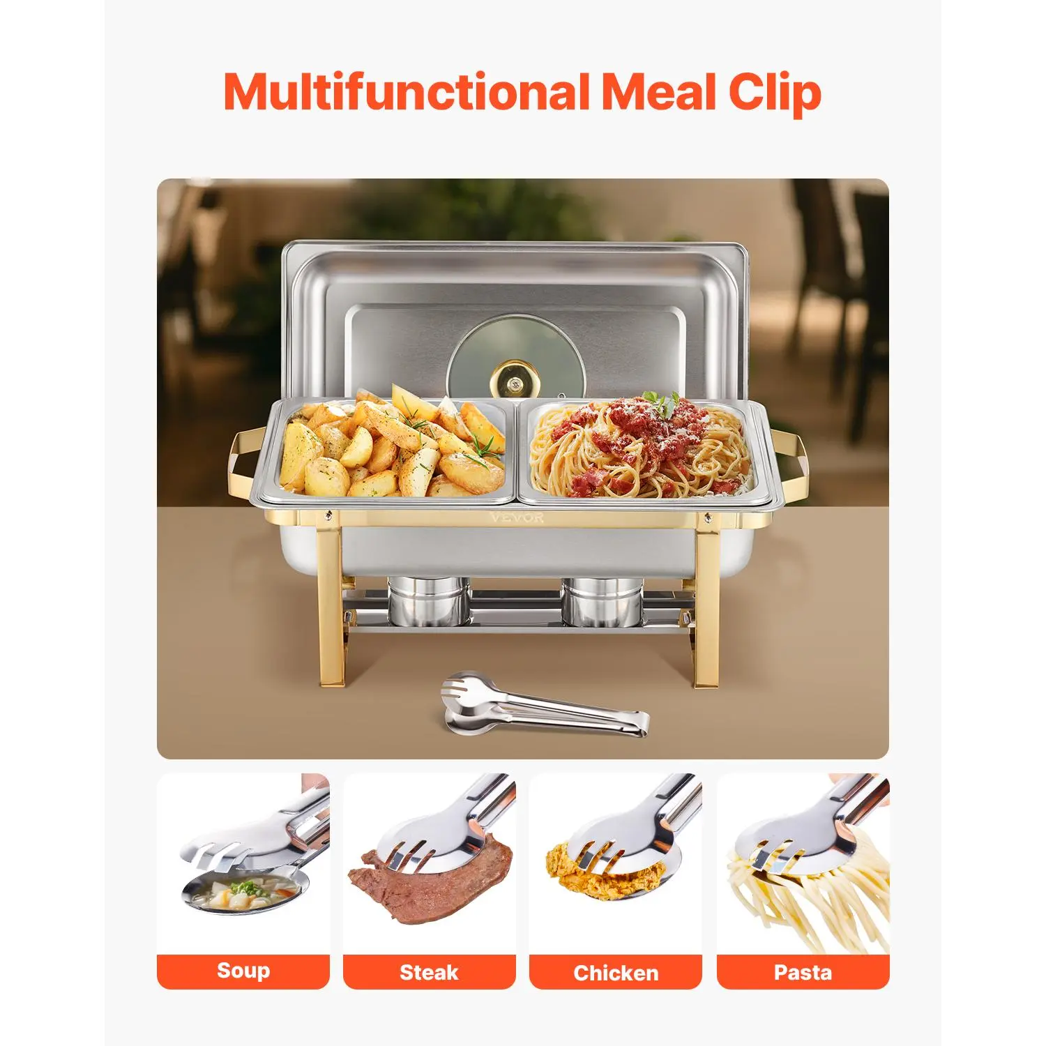 • Ample Capacity: With 4x4Qt half-size pans, this catering chafer set can hold multiple servings of your favorite dishes. The included multifunctional meal clip makes it easy to serve pasta, steak, soup, chicken, and more