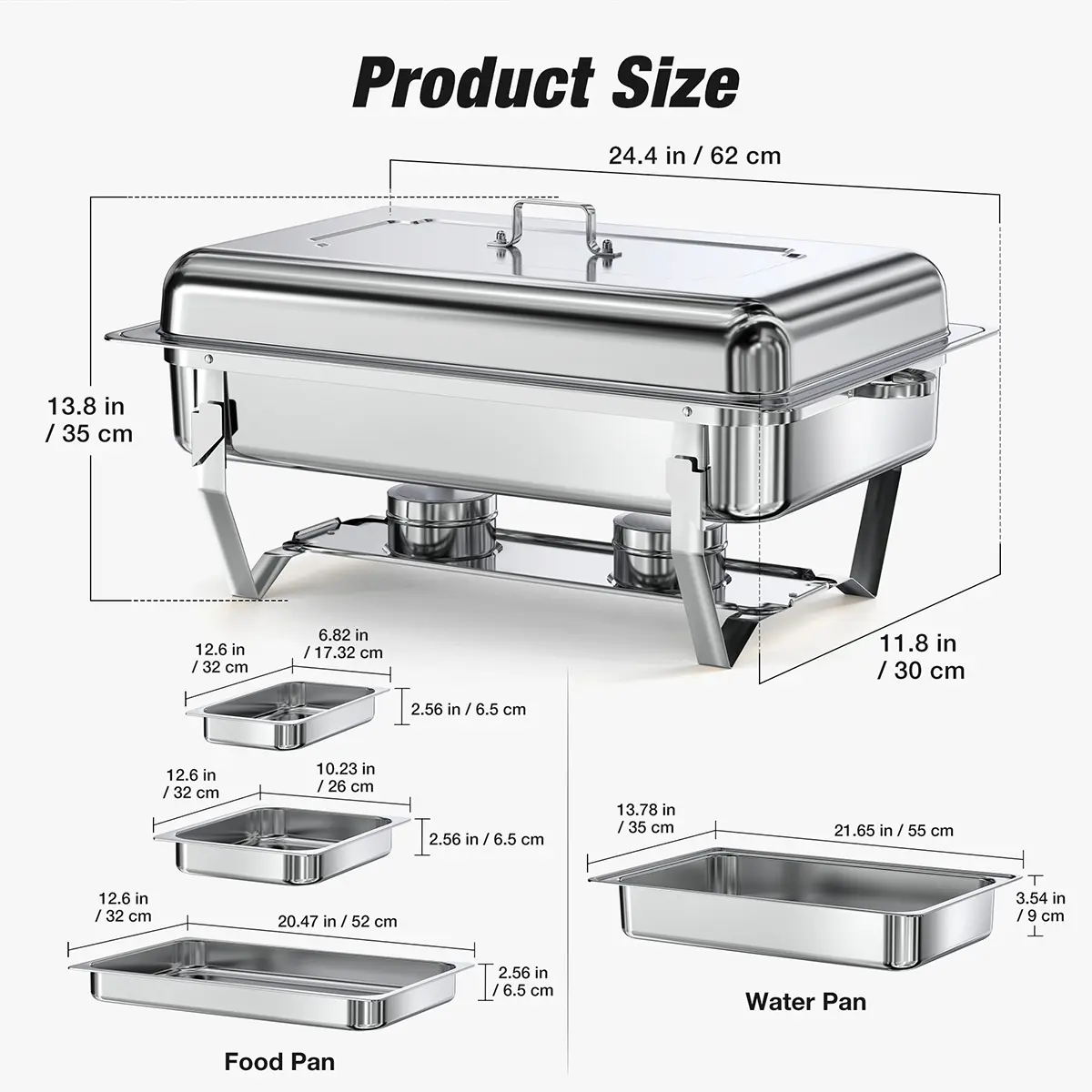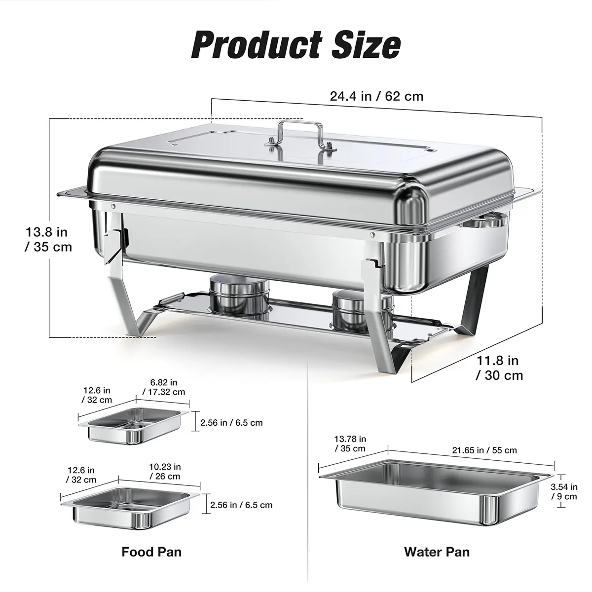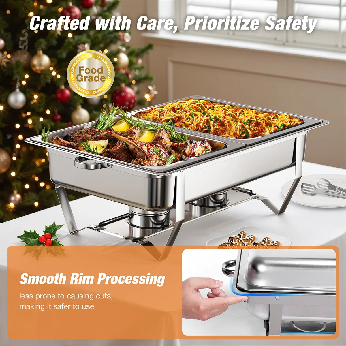 BUILT TO LAST, SAFE TO USE - Crafted from heavy-duty stainless steel, this chafing dish buffet sets resist rust, dents, and wear for long-lasting use. Rolled rims ensure safe handling, protecting you from accidental cuts during setup or service