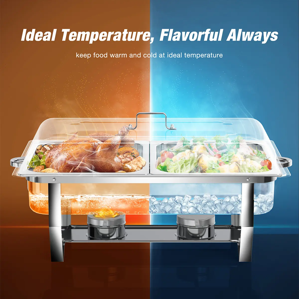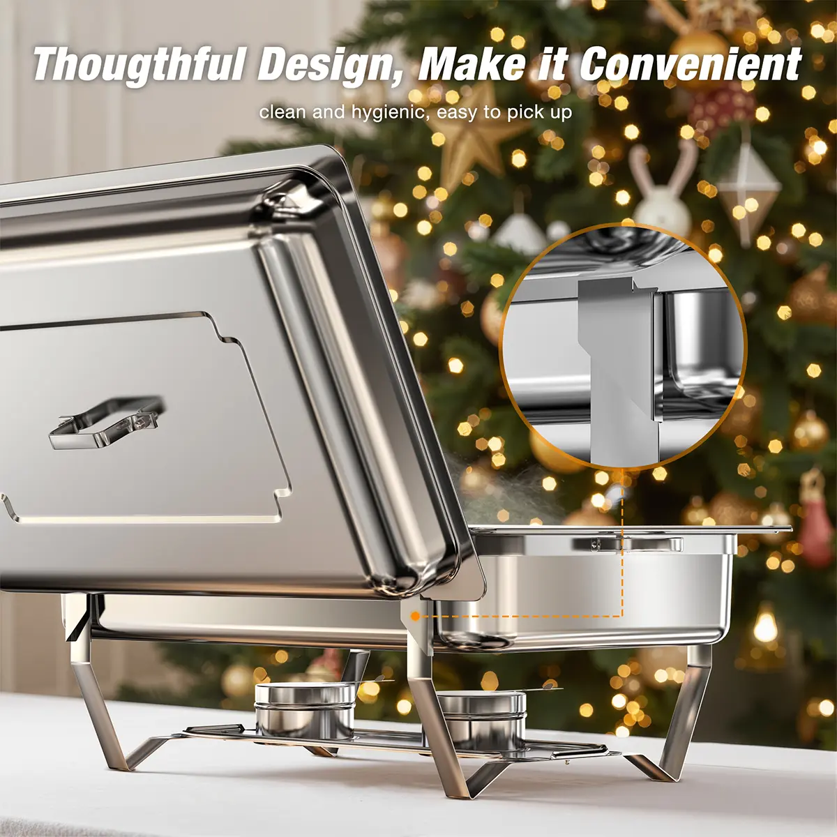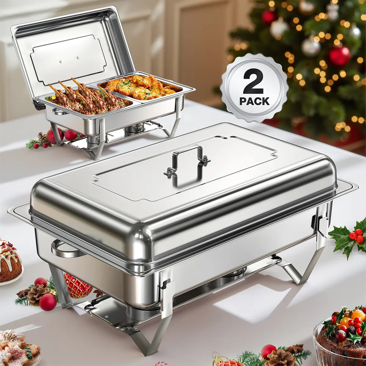 BUILT TO LAST, SAFE TO USE - Crafted from heavy-duty stainless steel, this chafing dish buffet sets resist rust, dents, and wear for long-lasting use. Rolled rims ensure safe handling, protecting you from accidental cuts during setup or service