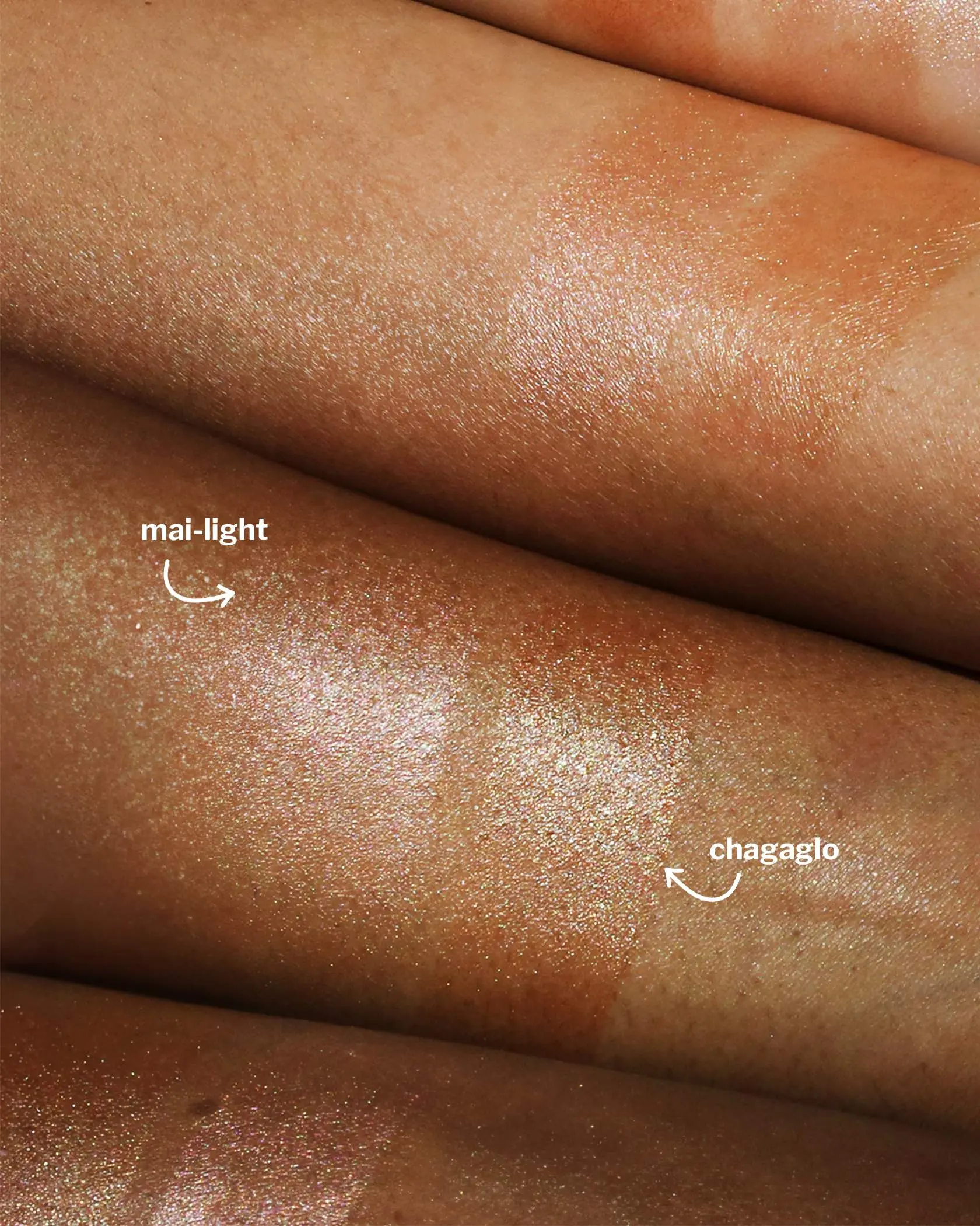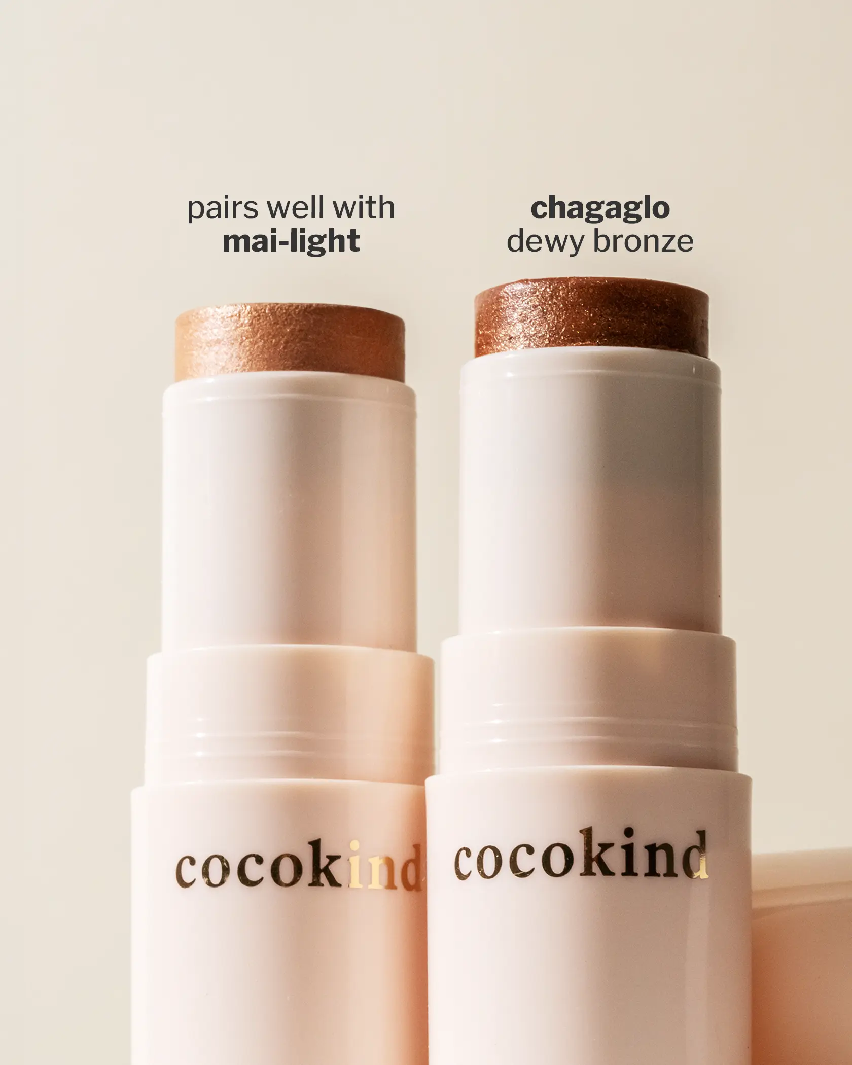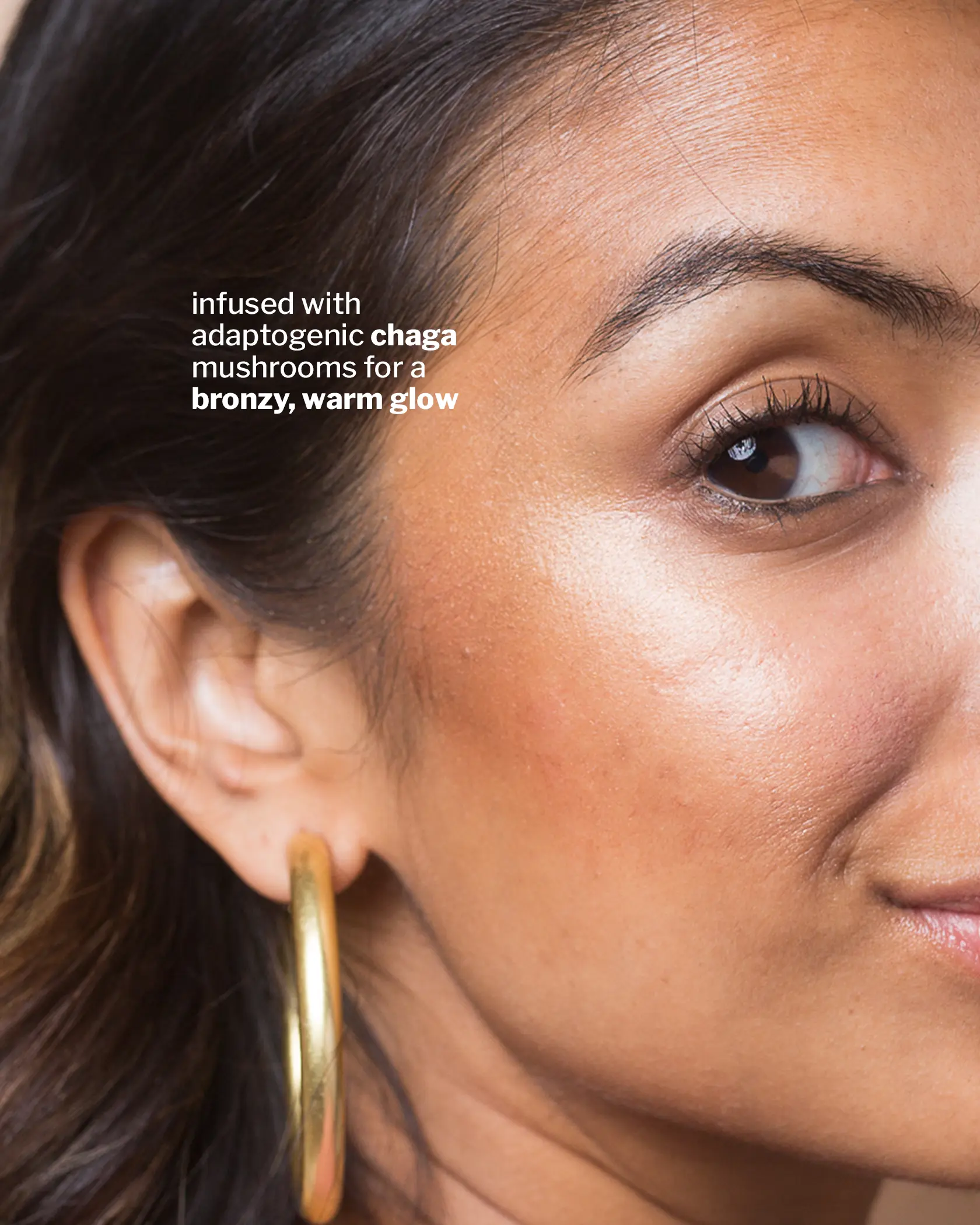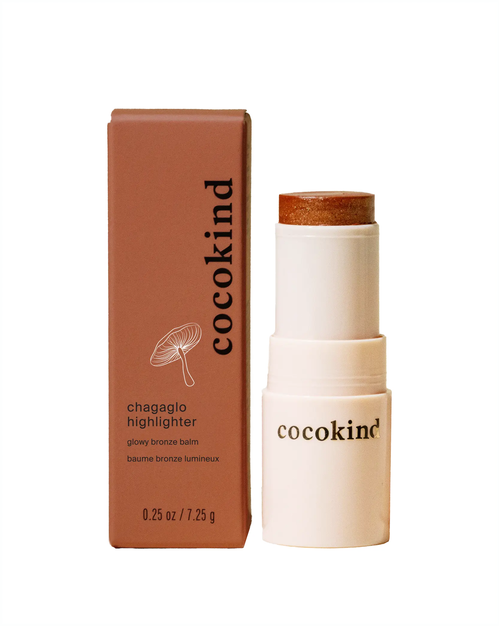 Back in stock! Our community-favorite multi-purpose highlighter balm, Chagaglo, is back! Infused with adaptogenic mushrooms and nourishing hydrators, this skincare-makeup hybrid adds an effortless bronzy glow to cheeks, lips, eyes, and body.