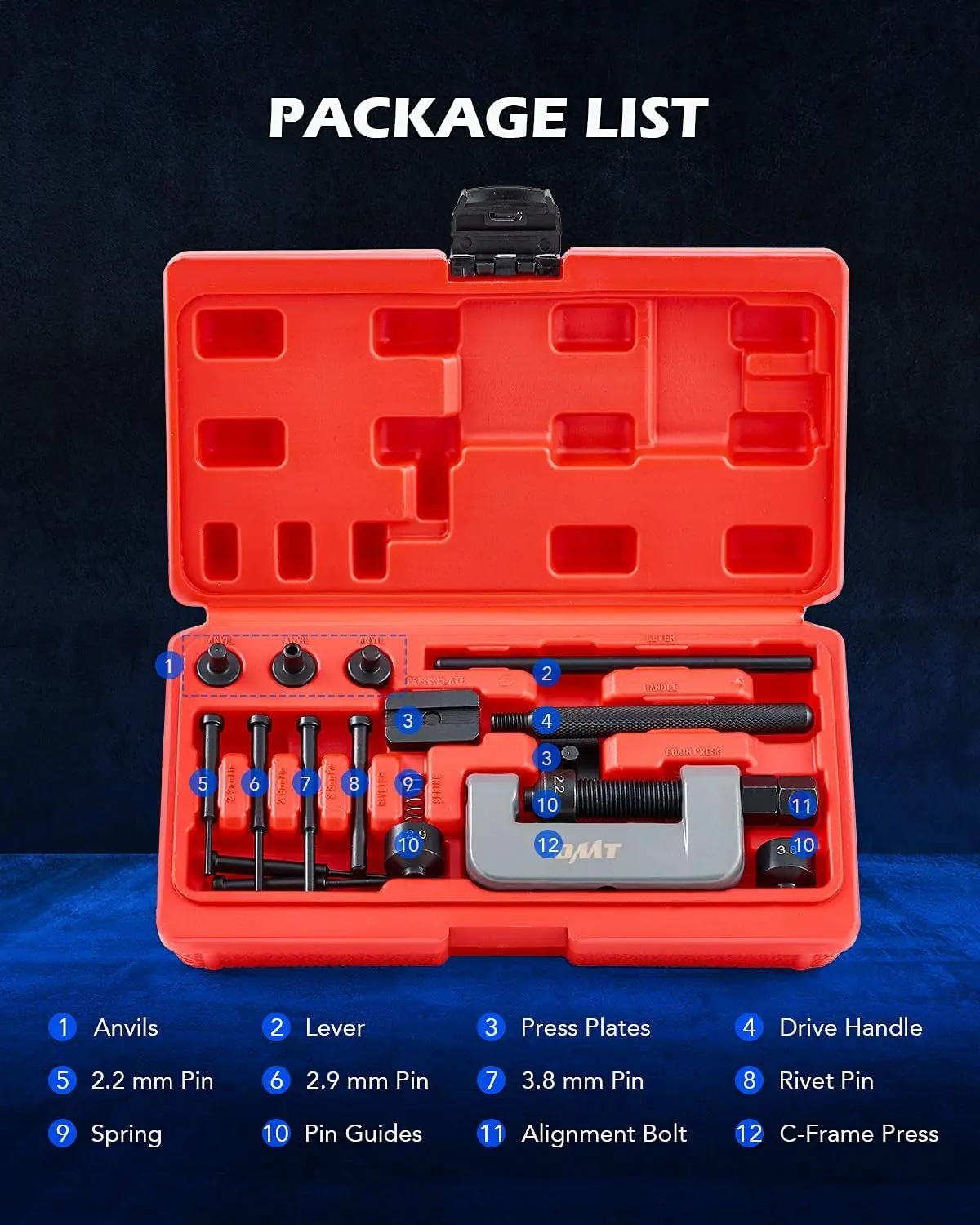 WIDE APPLICATION: Our chain tool is versatile enough to be used on bikes, motorcycles, ATVs, and more; use the 2.2 mm break tip to handle almost any cam chains, the 2.9 mm break tips for #25 to #35 chains, and the 3.8 mm break tips for #428 to #630 chains