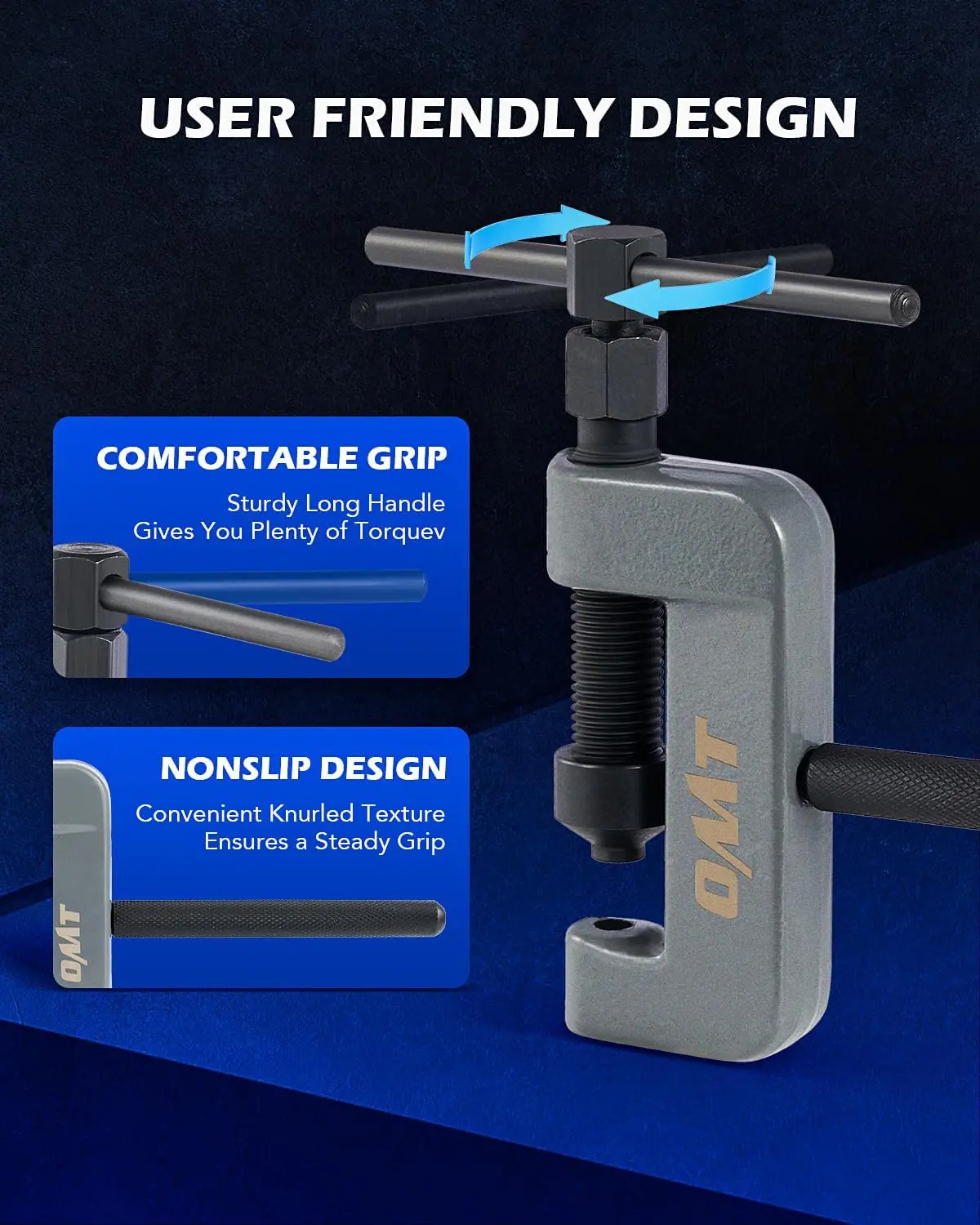 EASY TO USE: Our chain breaker and riveter's C frame press, 3 anvils, 5 break tips, and lever easily assemble to get your job done, with the threaded handle providing maximum torque and nonslip performance