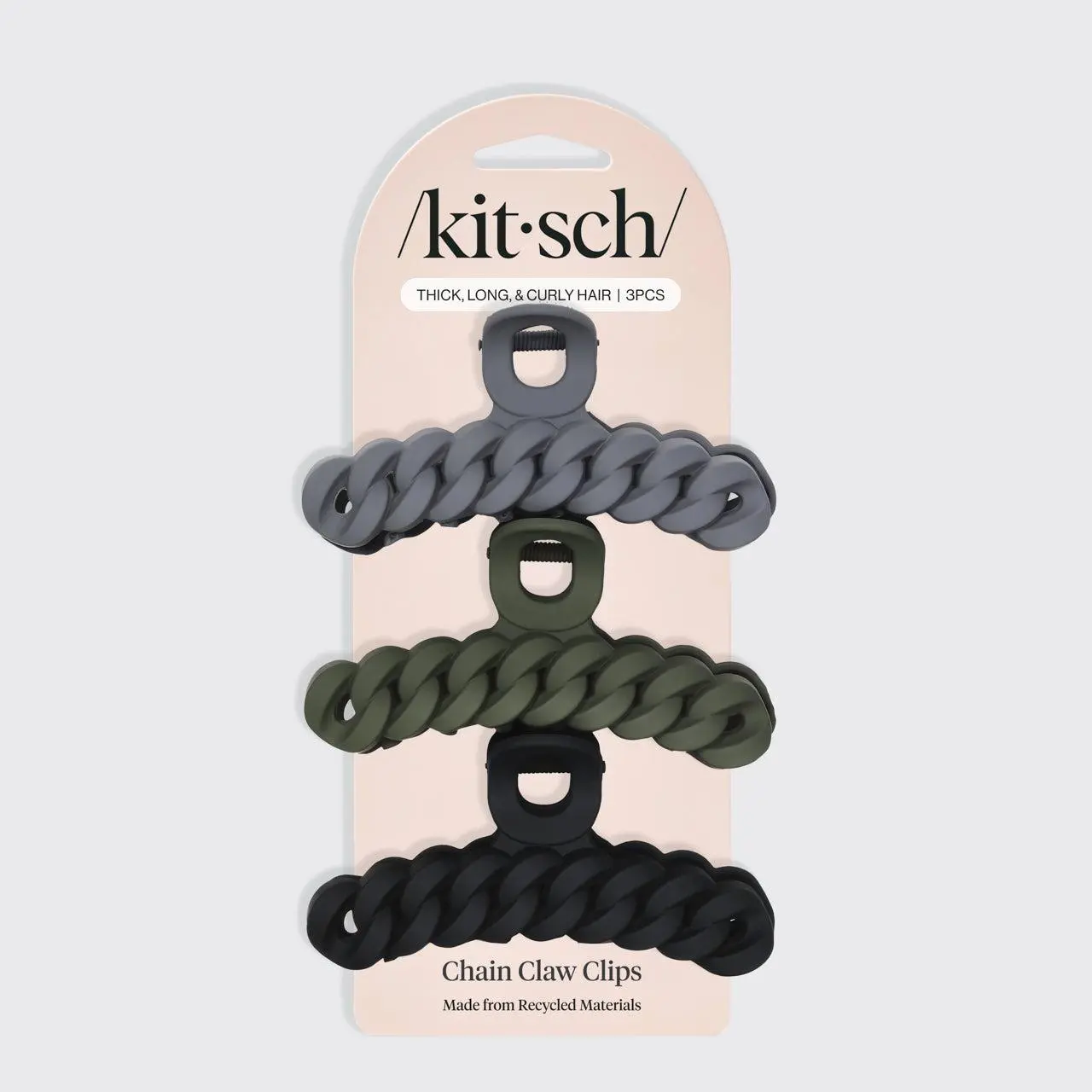 Step out looking effortlessly stylish with these sustainable chain claw clips. Our elevated take on the classic hair clip lets you twist your hair up with zero effort while making an on-trend statement. Crafted with recycled materials, these eco-friendly clips let you feel good about looking good. Choose from two sets of versatile neutrals to coordinate with all your favorite outfits.