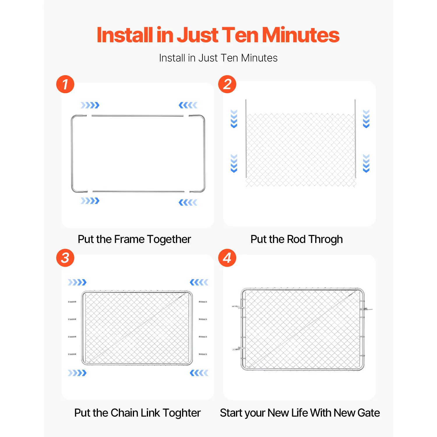 • High-Quality Materials: The frame of the chain link fence gate is made from durable galvanized steel, ensuring exceptional durability and rust resistance in all weather conditions.