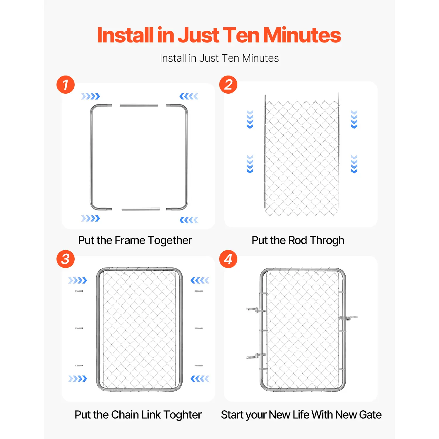• High-Quality Materials: The frame of the chain link fence gate is made from durable galvanized steel, ensuring exceptional durability and rust resistance in all weather conditions.