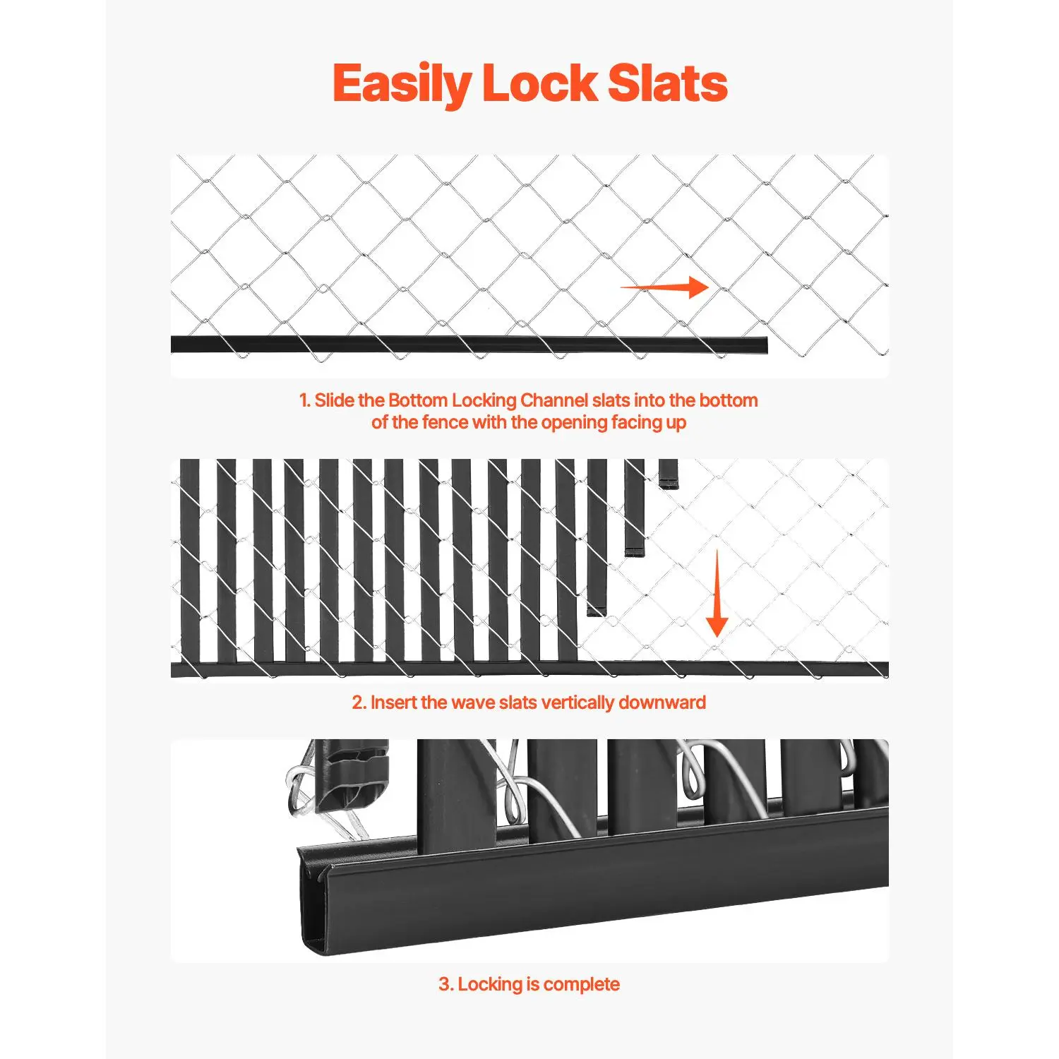 • Quick Installation: You just need to simply snap the slats into the bottom locking channel for secure attachment. This not only improves the installation efficiency of the chain link privacy slats but also ensures their security and stability during use.
