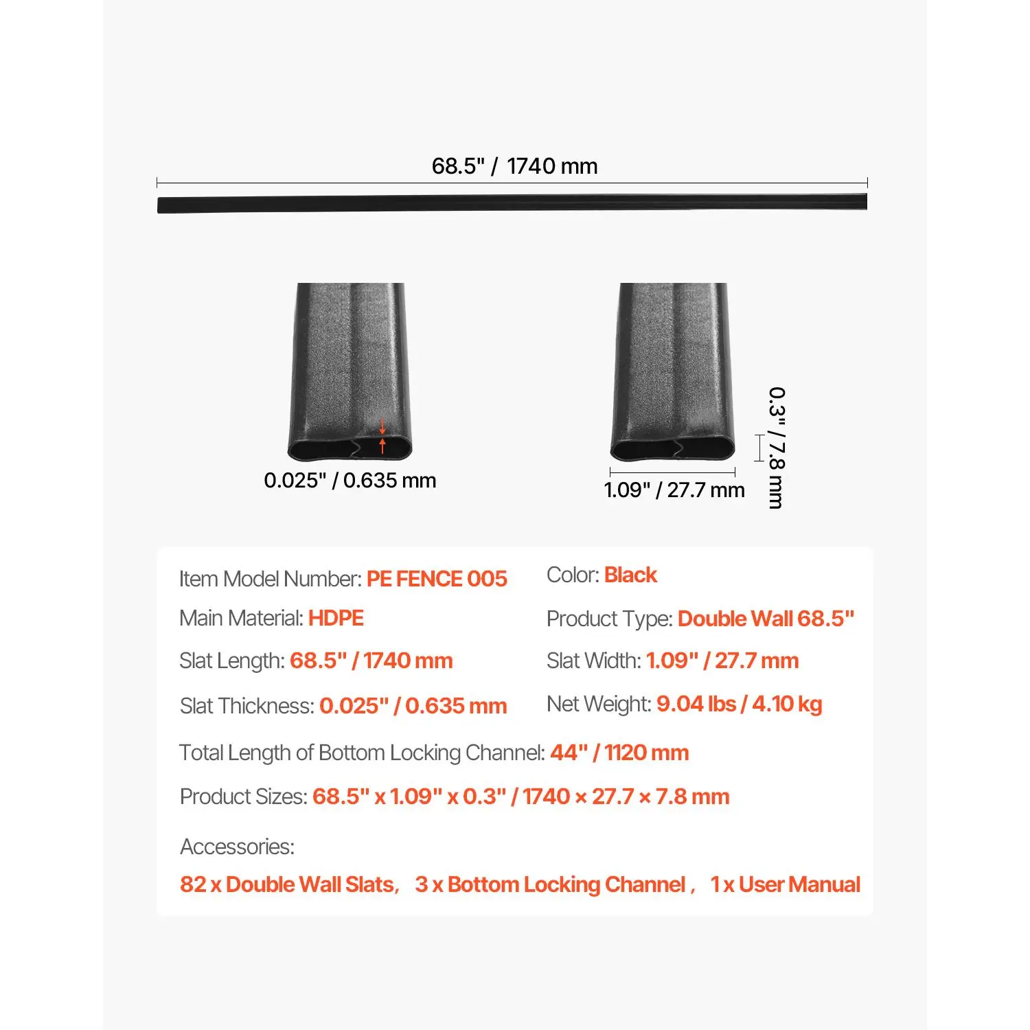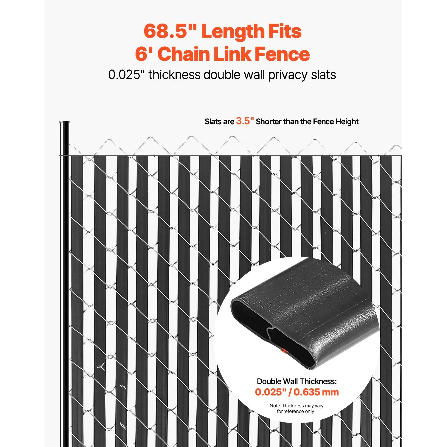 • Double-Wall Privacy Slats: Designed specifically for 6' high fences, these bottom locking privacy slats are approximately 68.5" in length, ensuring a ideal fit and avoiding slats from extending above the fence top.