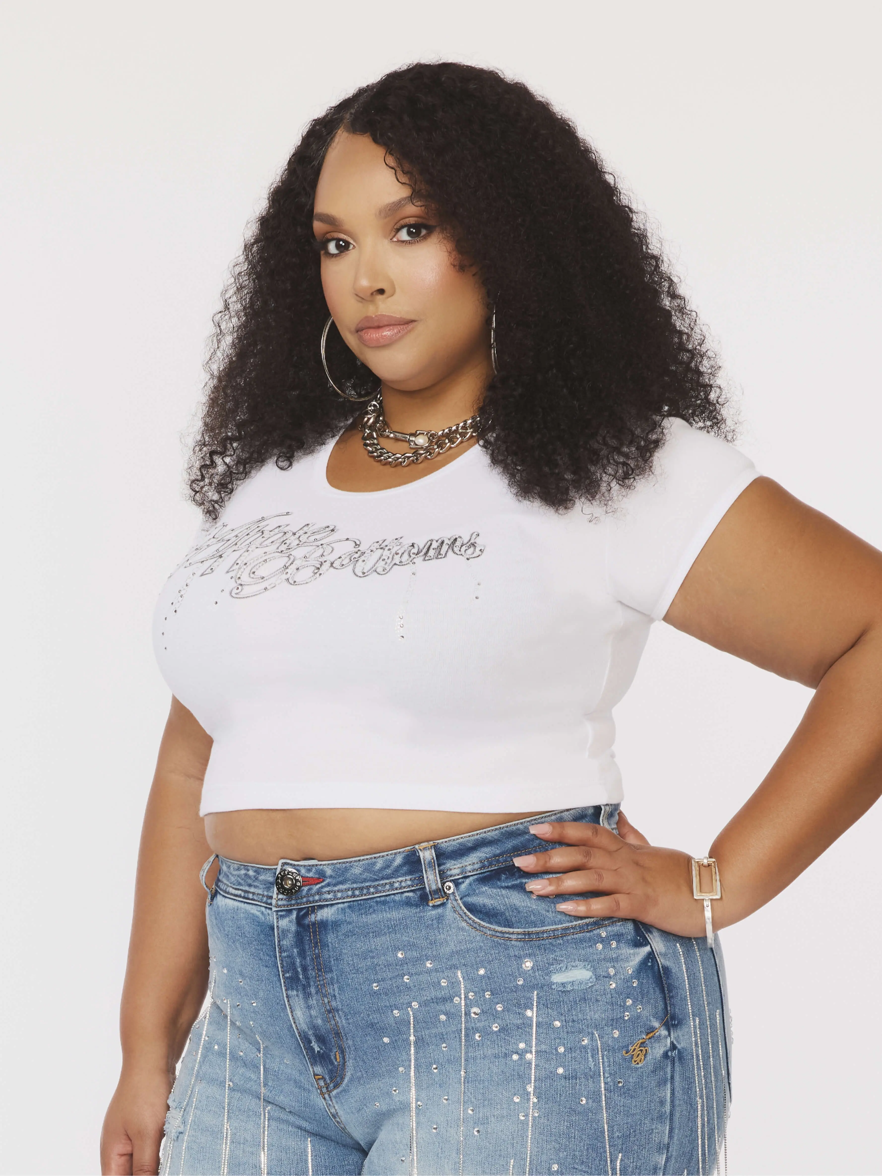 The Chain Reaction Baby Tee is the perfect blend of comfort, nostalgia, and edge. With the chain link logo, super stretch fabric, and form-fitting design, this soft cotton tee molds to your curves like a second skin. With your favorite jeans, this baby tee adds a touch of attitude to any casual look.