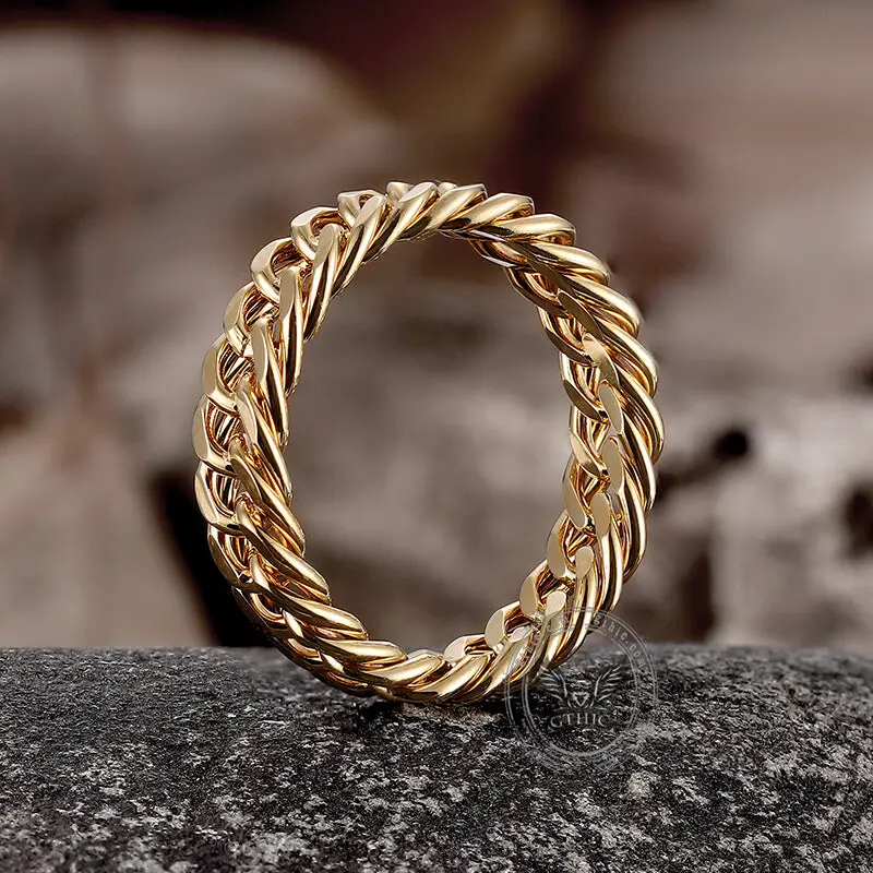·Double weave chain pattern: The unique double weave chain pattern adds an interesting and eye-catching element to the ring, making it stand out from traditional designs.