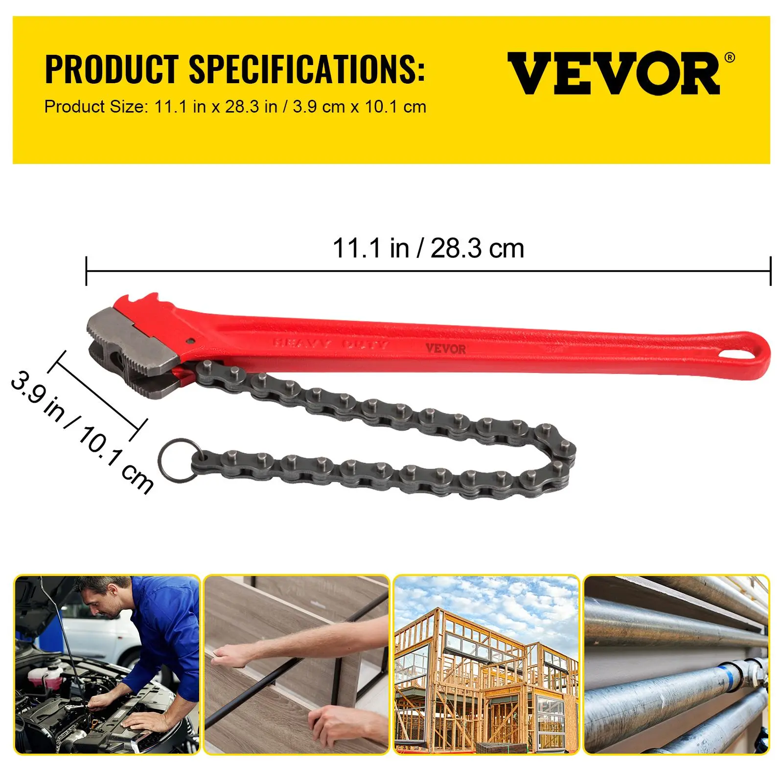 • Flexible Tooth Chain & Jaw: Chain wrench designed with double serrated jaws, it can hold the pipe tightly. And the chain is rust-proof and slip-proof. Our tool can be operated in the opposite direction.