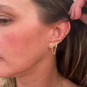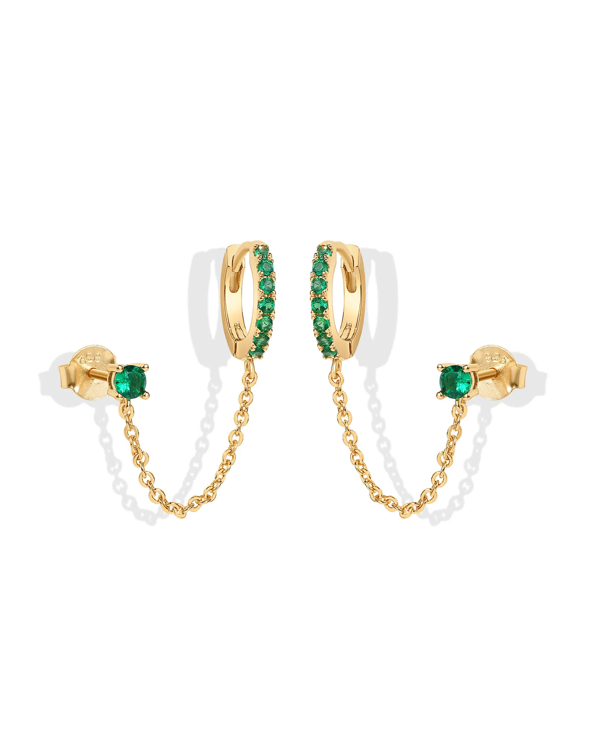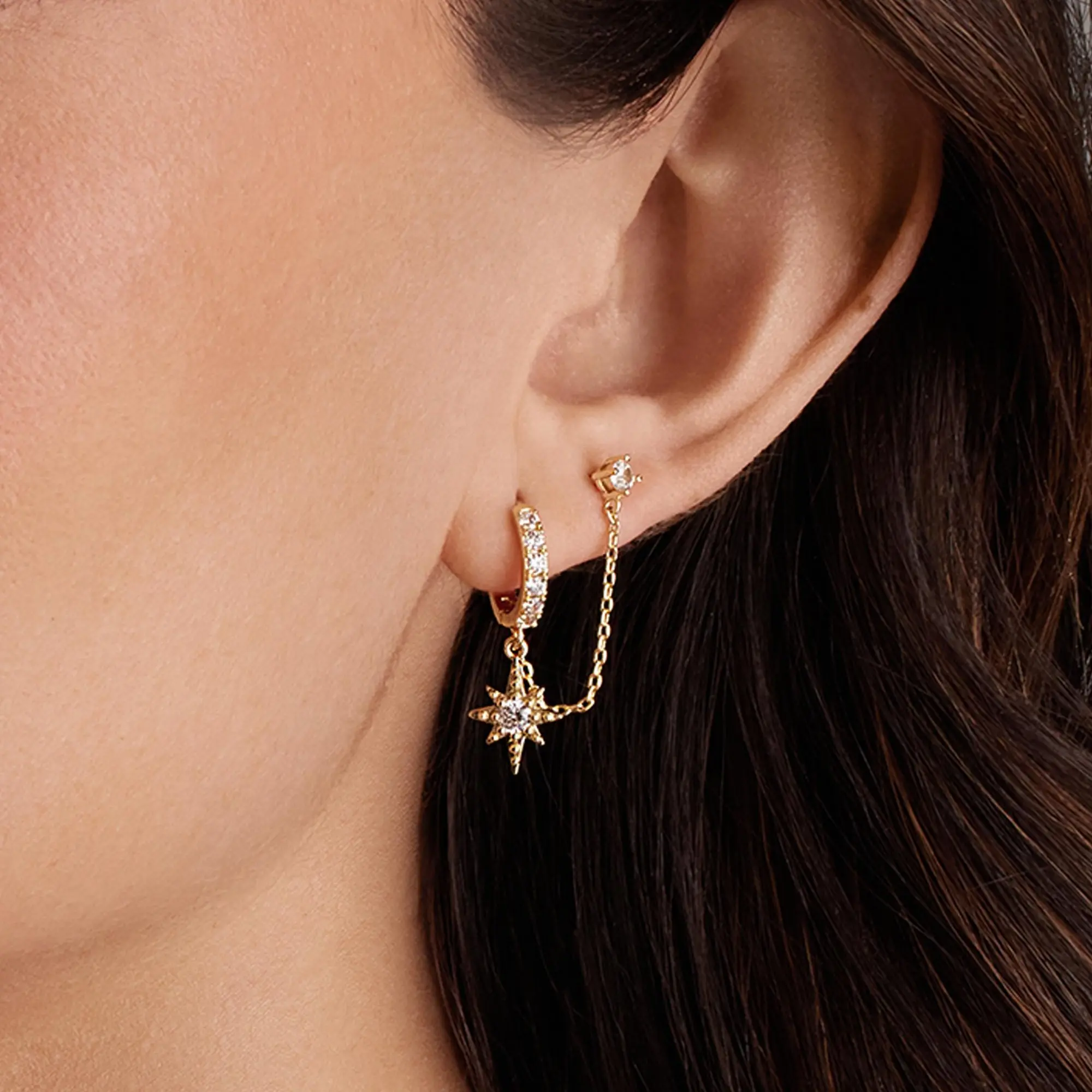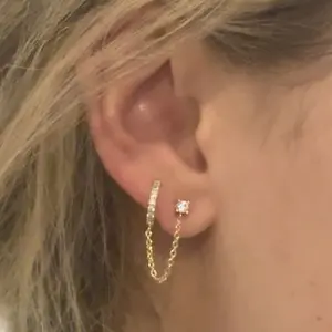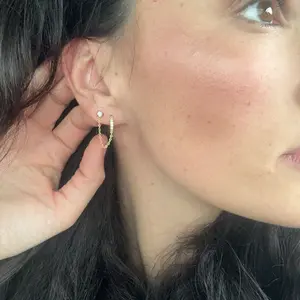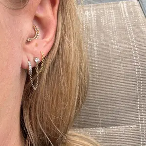 This chained huggie hoop with CZ stud is your ultimate statement accessory, blending sophistication with boldness. Add it to your collection today, and let your style shine!