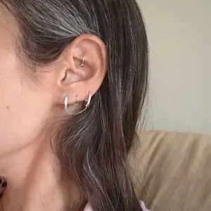 Turn heads with our PAVOI Chained Huggie Hoop, a bold yet elegant accessory designed to elevate any look. Combining a sleek huggie hoop with a dazzling CZ stud and chain, this standout piece is a must-have for your jewelry collection.