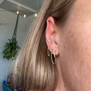 ·Double Huggie = 11mm Outer Diameter; Chain Length: 15mm.