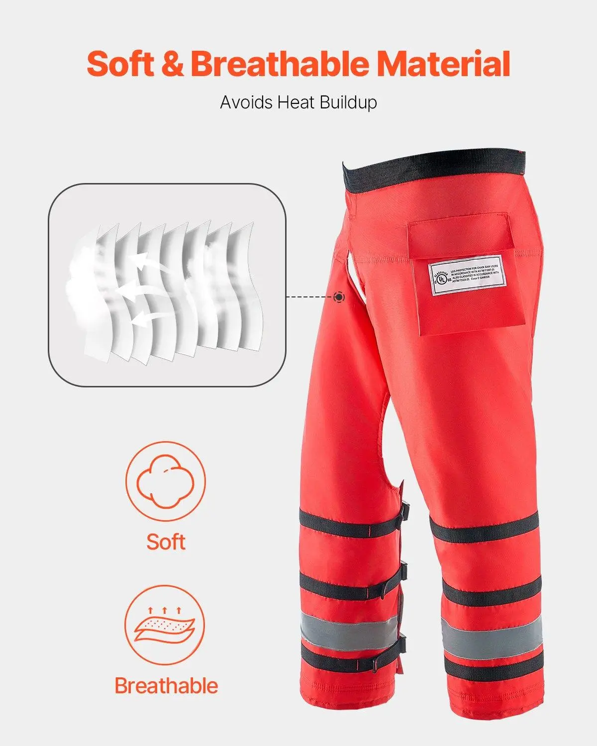 ·High Comfort: Ergonomically designed for a better fit, the lightweight chainsaw chaps allows for greater flexibility and mobility in various work positions without hindering operation. The soft inner lining helps prevent wear injuries from prolonged use.