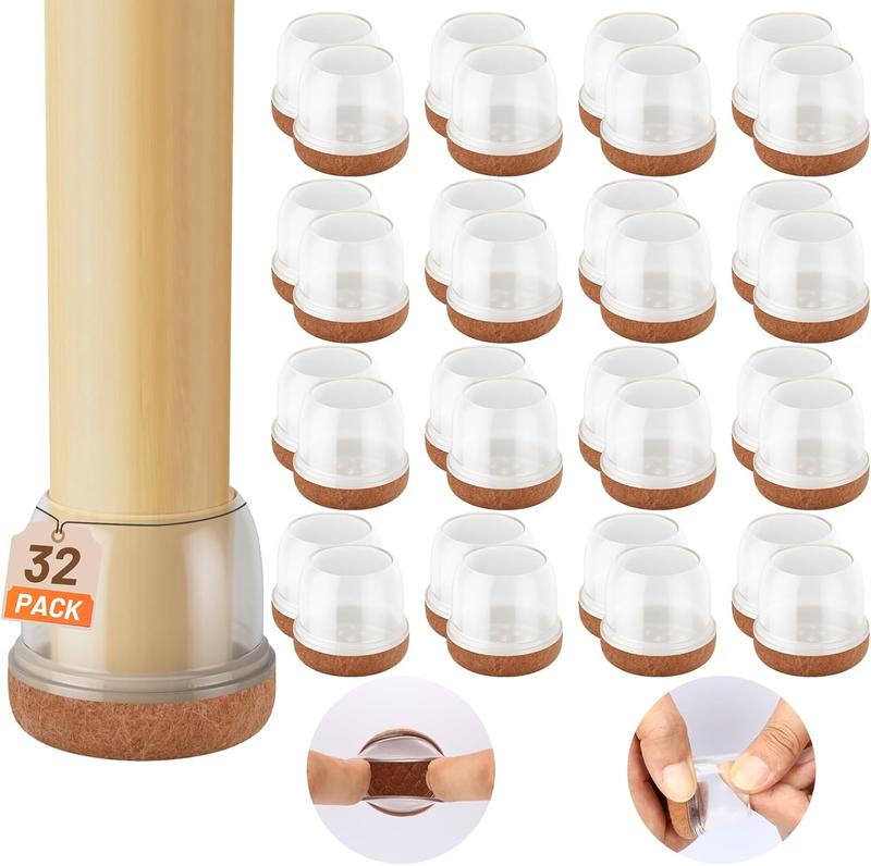 5. 32 PCs Chair Leg Protectors for Hardwood Floors, Extra Thicken Chair Leg Floor Protectors with Silicone Chair Leg Cap & Thickened Felt Furniture Pads