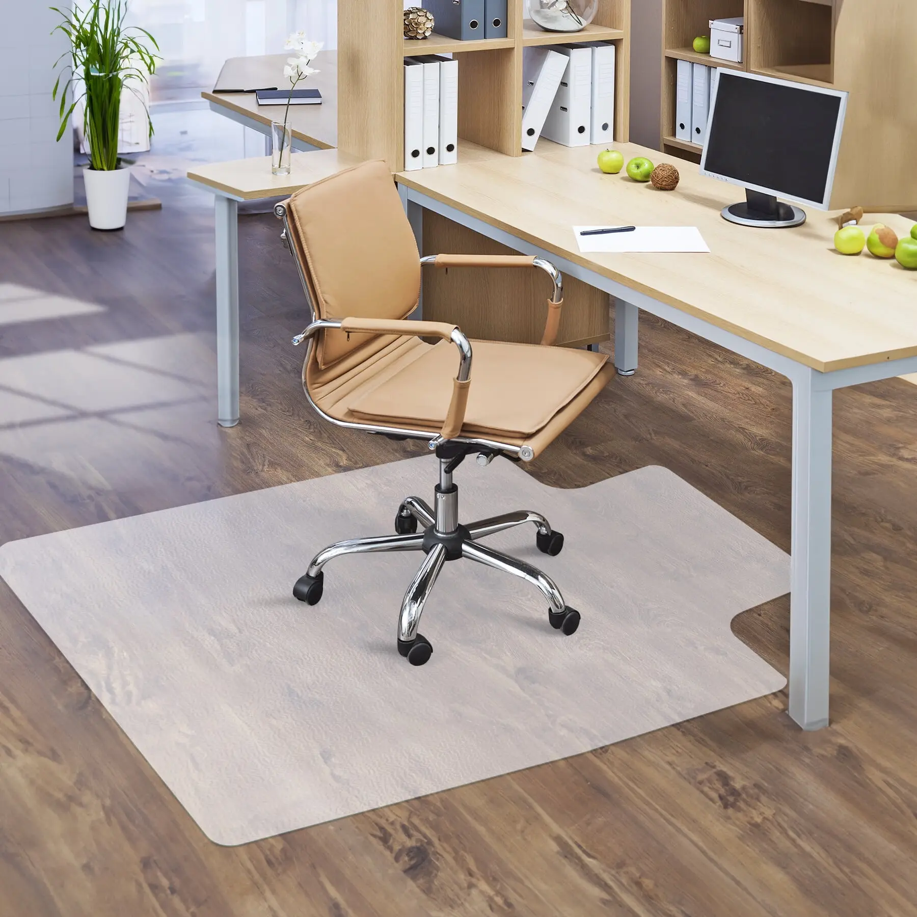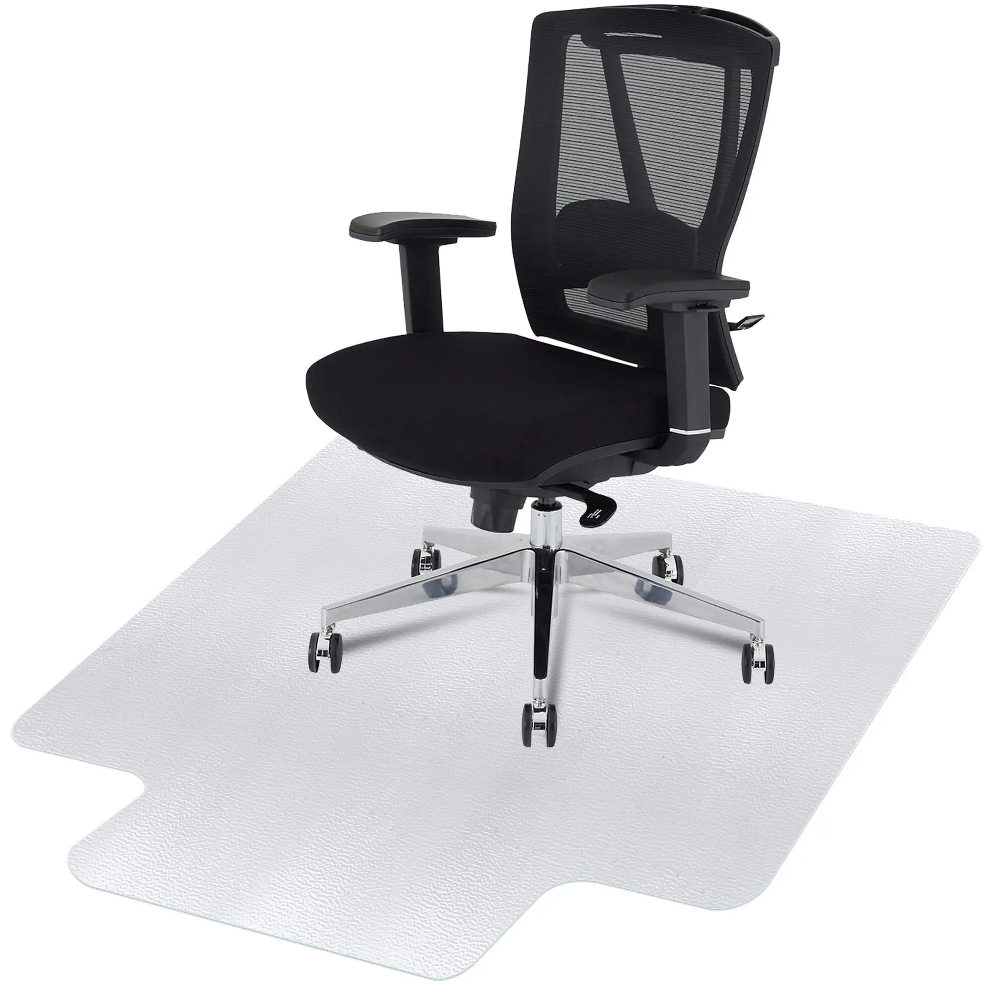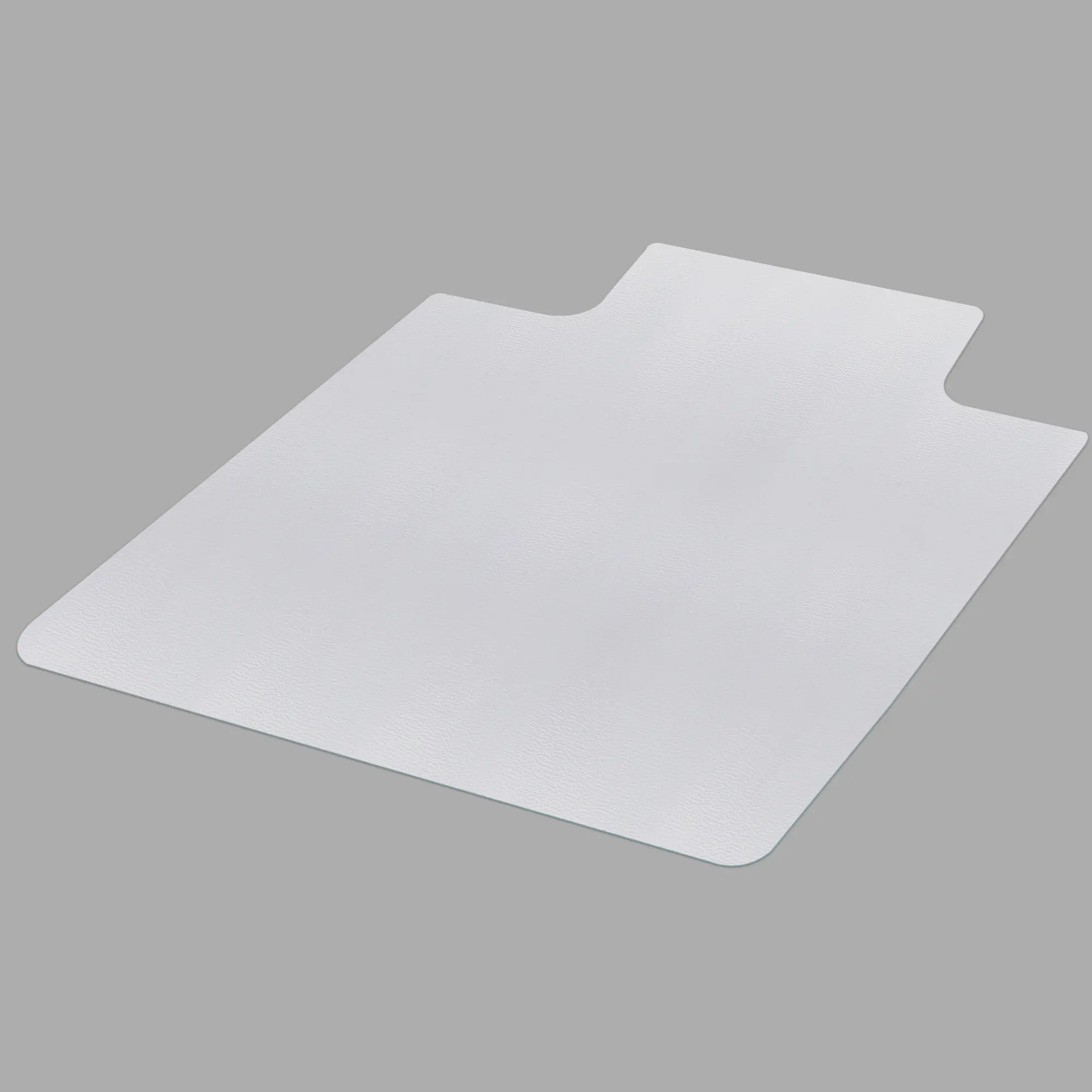 This Mat is meticulously designed to protect your hardwood floors from friction, scratches, and scuff marks caused by chair casters. Measuring 48" x 36", this clear PVC Floor Mat features a lip for added protection, making it an ideal choice for home, office, or studio environments. Its non-slip frosted surface on top ensures your chair stays in place, while the smooth bottom adheres securely to your floor, preventing slips.