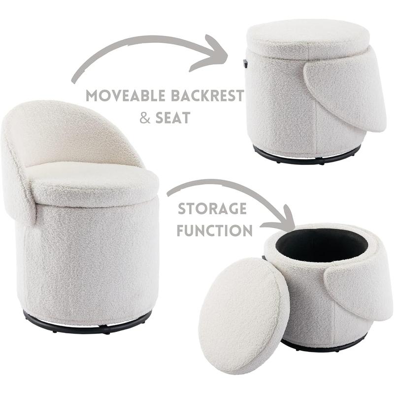 【Versatile 3-in-1 Design】Functions as a storage ottoman, a chair with a backrest, or a simple stool. Perfect for a variety of spaces and décor styles—whether in your vanity area, living room, bedroom, or office. Works beautifully as a guest chair, makeup stool, footrest, dressing chair, or even a step stool.