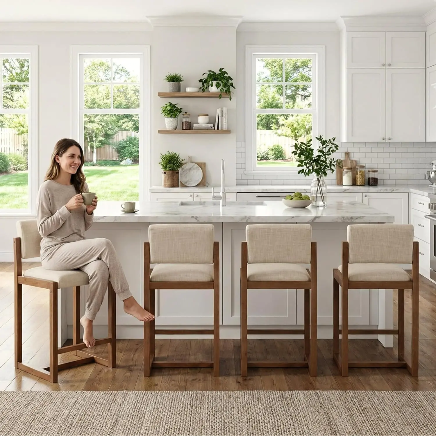 【Rustic Elegance】Armless, countryside-inspired bar chairs that add a touch of refined charm to your space. Perfect for the dining room, kitchen, living room, and more.