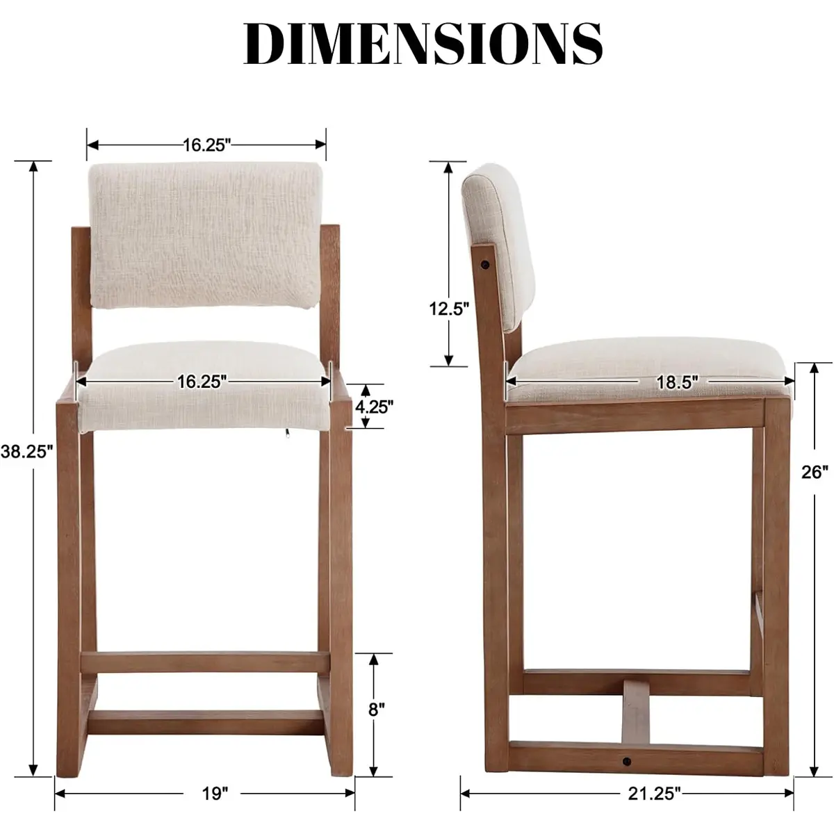 【Dimensions】verall: 21.25" L × 19" W × 38.25" H Seat Size: 18.5" D × 16.25" W × 4.25" Thickness Seat Height: 26" Weight Capacity: 250 lbs