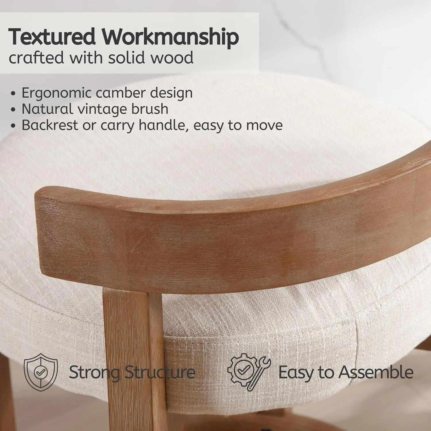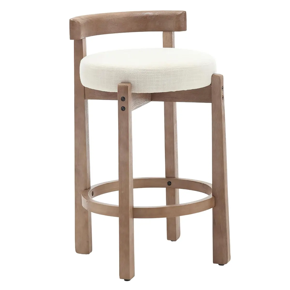 【Stylish Design】: The curved open back and circular footrest boast smooth lines, solid wood frame not only provides support but also adds a visually appealing element to the chair's design. Our wooden island chair comes without arms, which won't limit the user's body size, keeping it stylish while considering a wide range of applicants