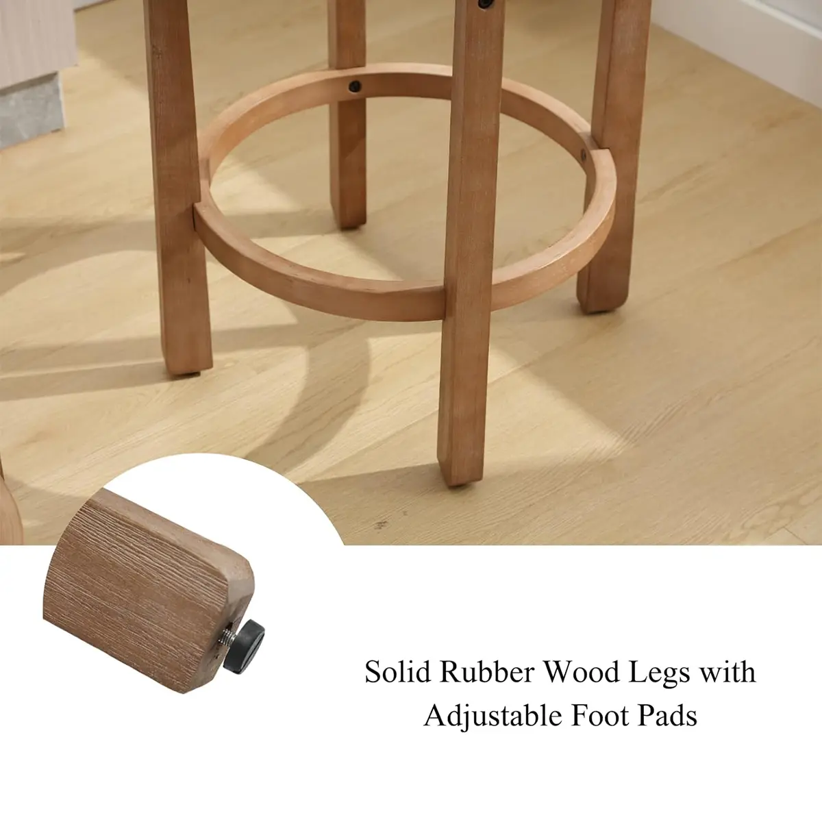 【Sturdy Frame】: The stable wooden footrest design, free your feet when you sit down, and make this cushion barstool more stable, so that you can use it for a long time. Equipped with plastic foot pads, not only non-slip, but also prevent the floor from being scratched
