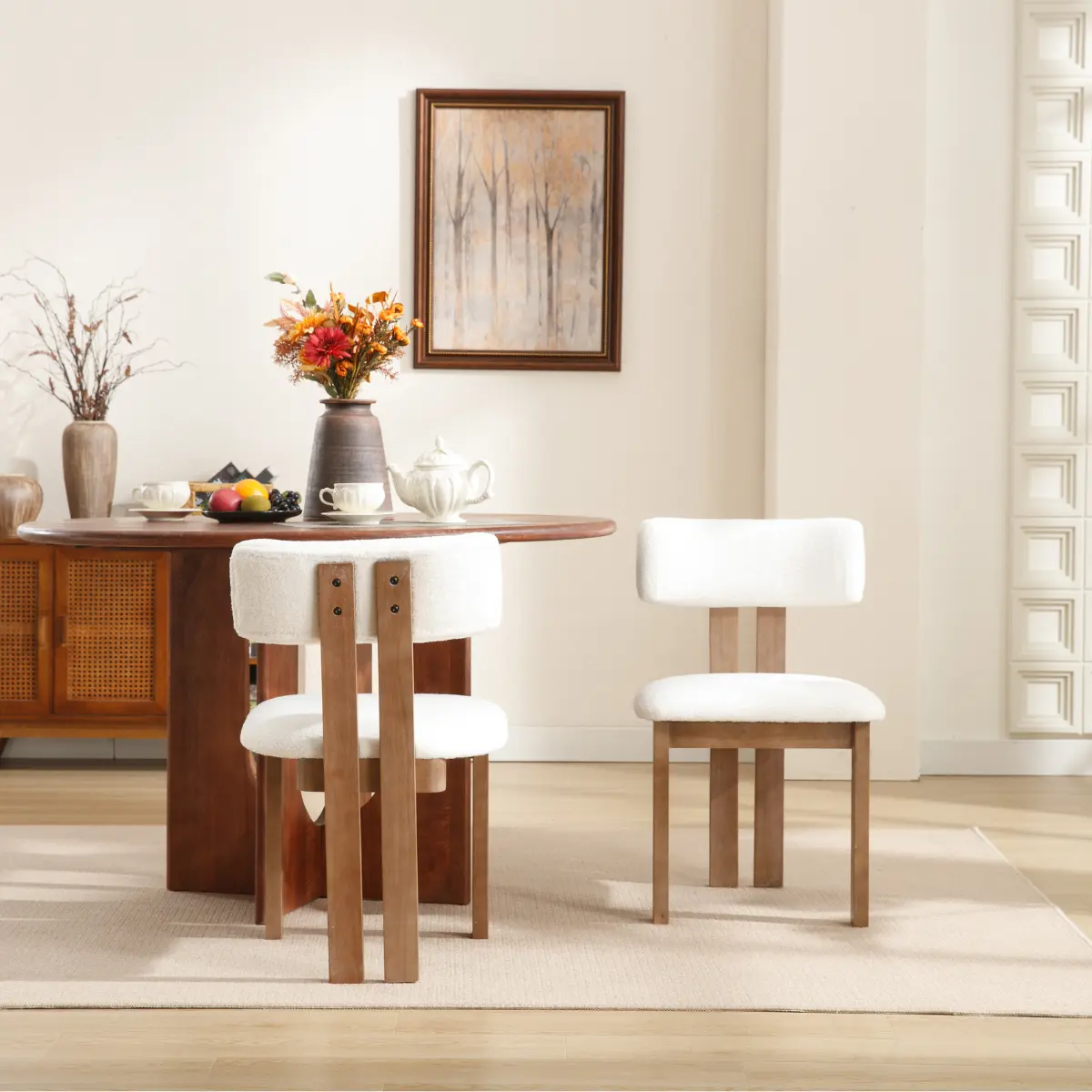 [Classic Appearance] The unique curved open-back design and vintage-colored wooden structure give this dining chair a distinctive charm. The natural wood grain showcases the beauty of nature, providing a sense of natural comfort, making it perfect for decorating vintage home designs.