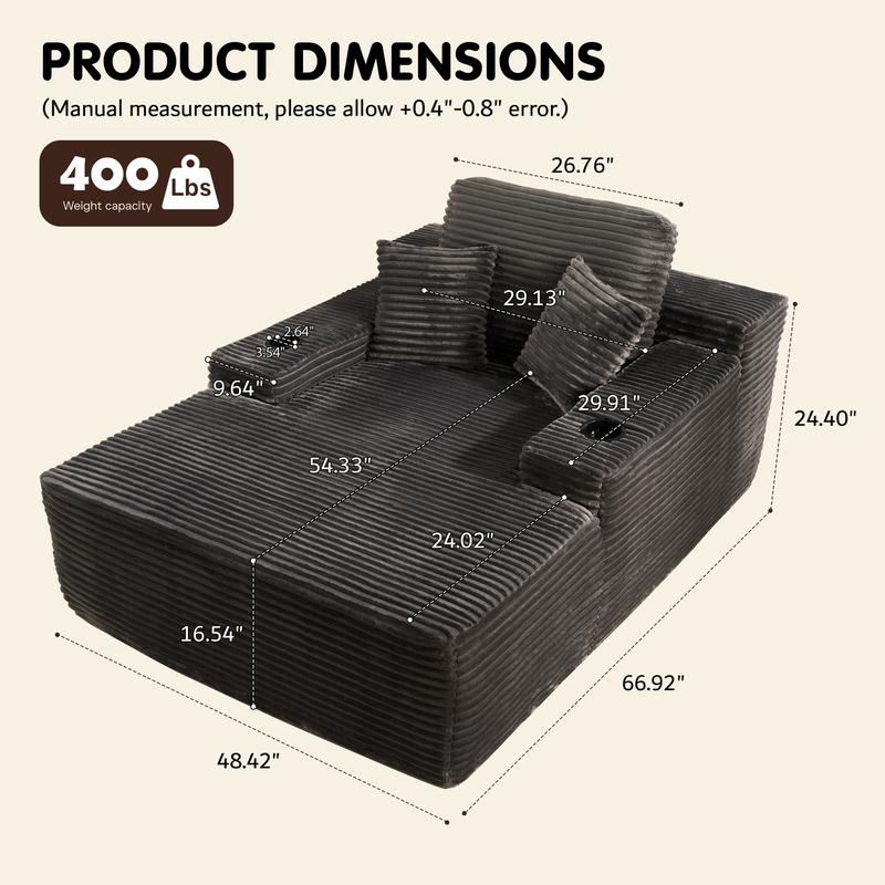 Grey Plush Corduroy, 81" Oversized Double Lounge Chaise