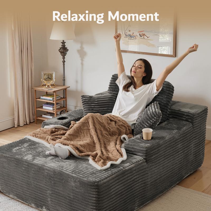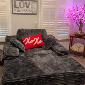 This couch is so soft and bouncy and it is way bigger than I expected, me and my family already fighting over it. It’s great for naps watching tv and just chilling the pillows are super soft the couch is bouncy and firm and comes with cup holders I love it so much! Go buy it nowwwww!
