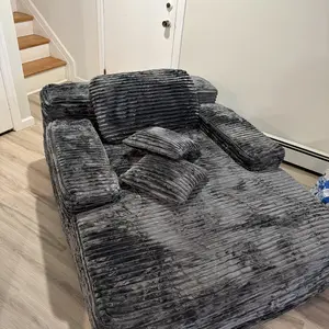 This chaise is ridiculously comfortable! My family fights over who gets to sit in it. It’s big enough for a couple people to snuggle in. It’s durable. It is so soft… don’t hesitate, purchase it.