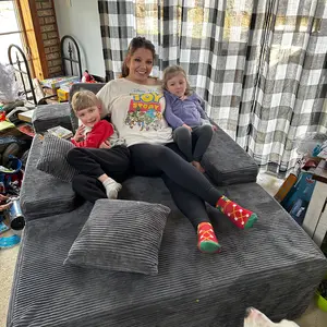 I love it! It's so comfortable and cozy that I'm thinking of buying another boneless L couch set soon. My two Boston terriers also enjoy sitting with me on it.
