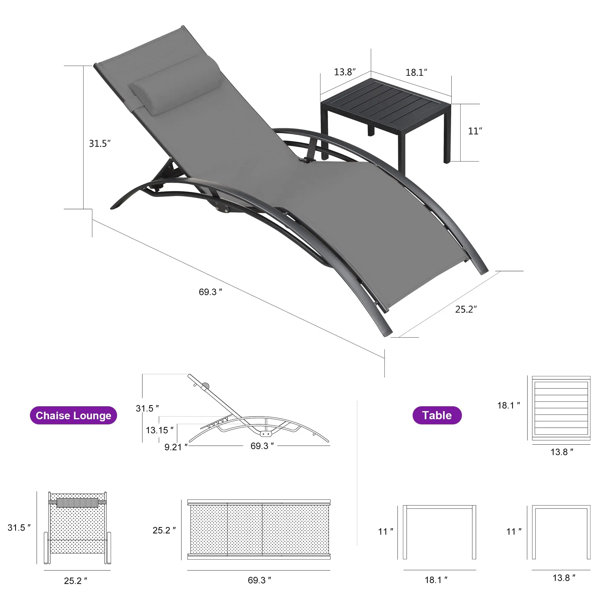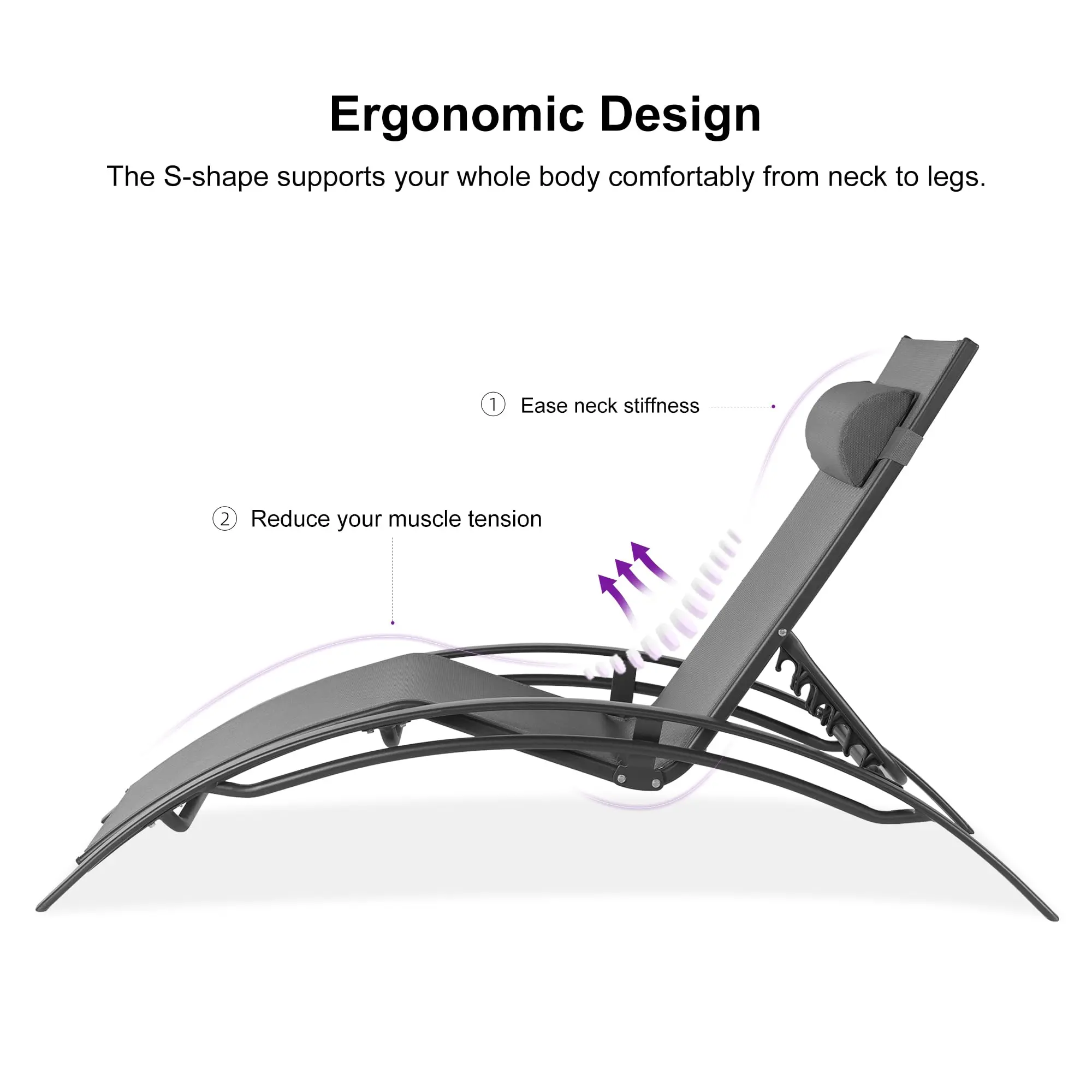 Sleek Design: The frame of the pool lounge chairs is made of high-quality aluminum alloy, which is rust-proof and corrosion-proof. The patio lounger is strictly ergonomically designed with a perfect curvature to hold up to 265 lbs, it is suitable for most adults.