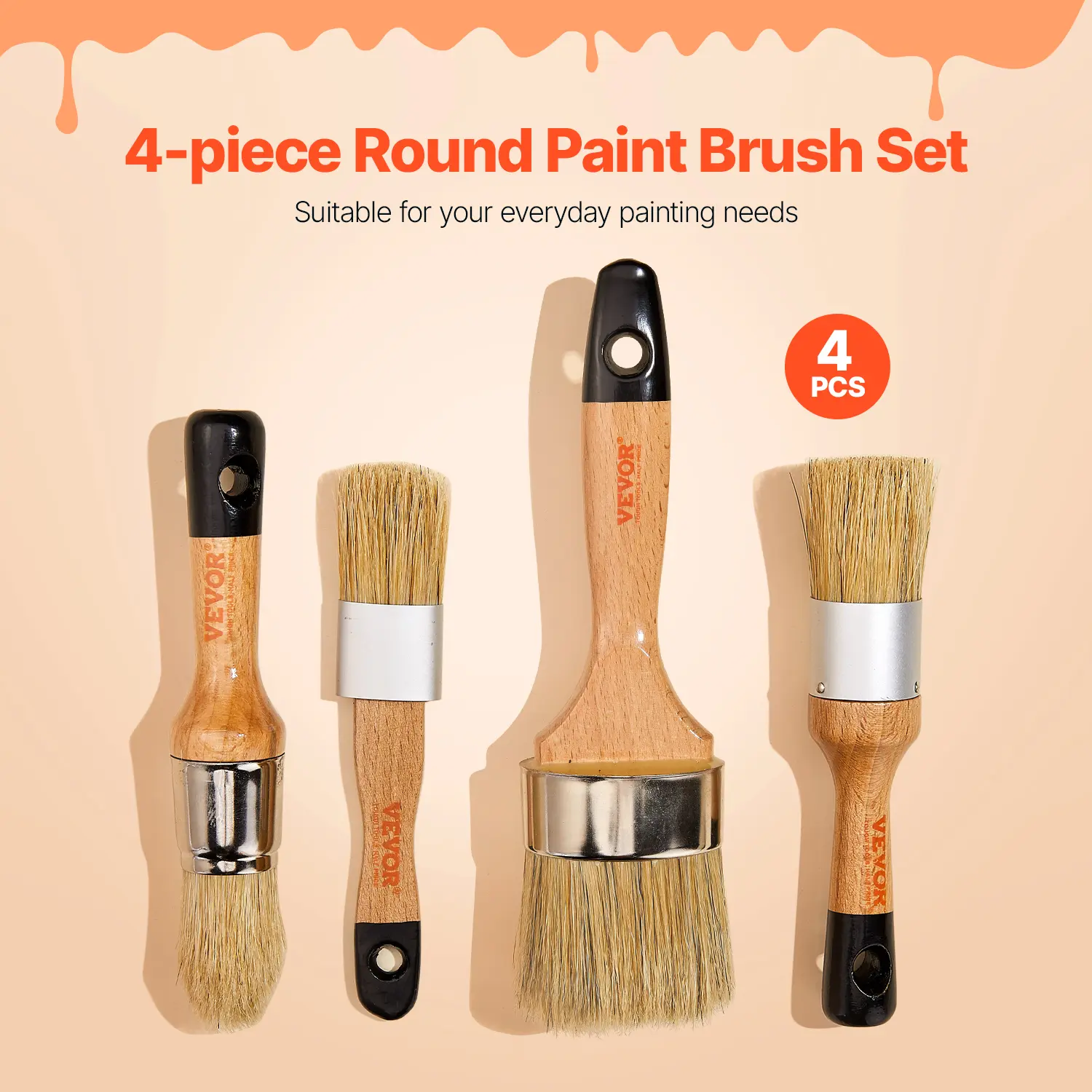 • 4-Piece Round Paint Brush Set: The chalk wax paint brush includes a pointed round brush, small oval flat brush, standard round brush, and oval flat brush to meet your everyday painting and replacement needs. It is ideal for handling intricate work on corners and edges, delivering smooth and flawless results.