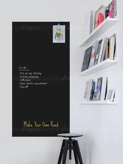 Stay organized with the help of this chalkboard wall decal. This chalkboard wall decal incorporates a black chalkboard vinyl that you can write on and erase. It is applied directly to the wall. (Chalk Ink pen not included.)