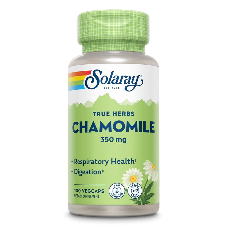 Committed to offering the finest sun-grown herbs the earth has to offer, Solaray is pleased to provide our powerful Chamomile that includes 350 mg of chamomile flowering tops in each 1-VegCap serving.