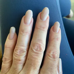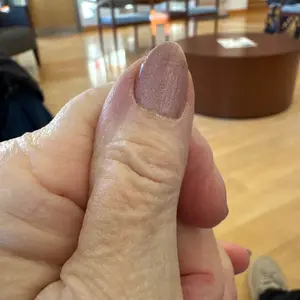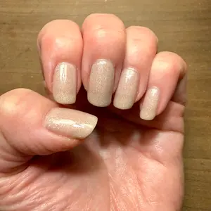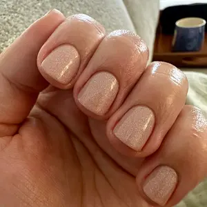 This color is so nice! It's the perfect shade of neutral and pink and the glitter makes it look so beautiful like a gel polish. Also if it chips you don't even notice because the shade is that good. I can't say enough about this polish, beautiful product!
