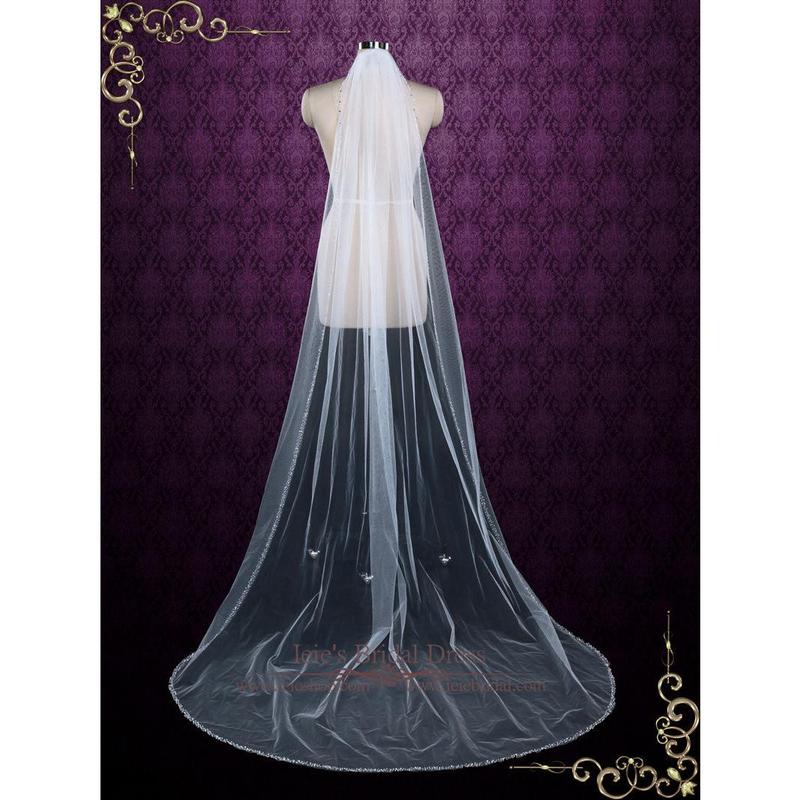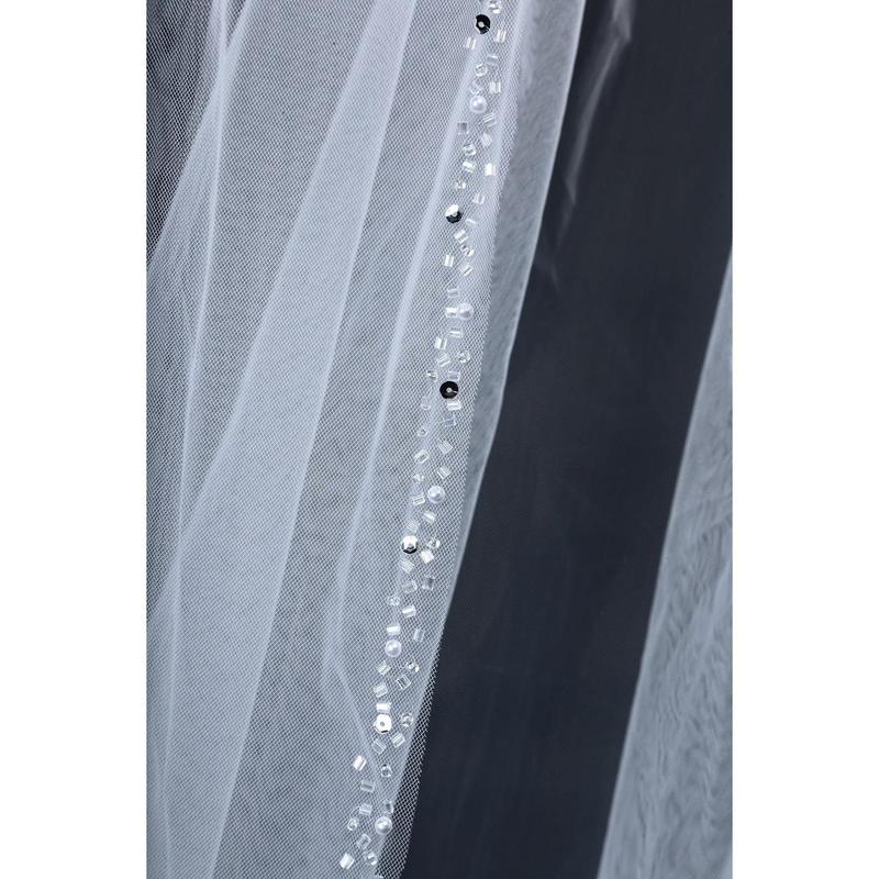 Chapel Length Single Layer Tulle Veil with Beaded Edge VG1063