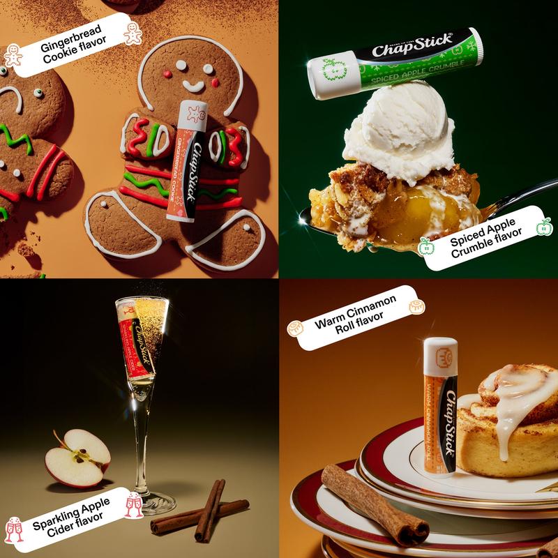 ·Holiday Lip Care Must-Have – Includes 4 classics (Original, Strawberry, Cherry, Spearmint) plus 8 limited-edition seasonal flavors: Candy Cane, Hot Chocolate, Holiday Nog, Pomegranate Spritz, Gingerbread Cookie, Spiced Apple Crumble, Sparkling Apple Cider, and Warm Cinnamon Roll.