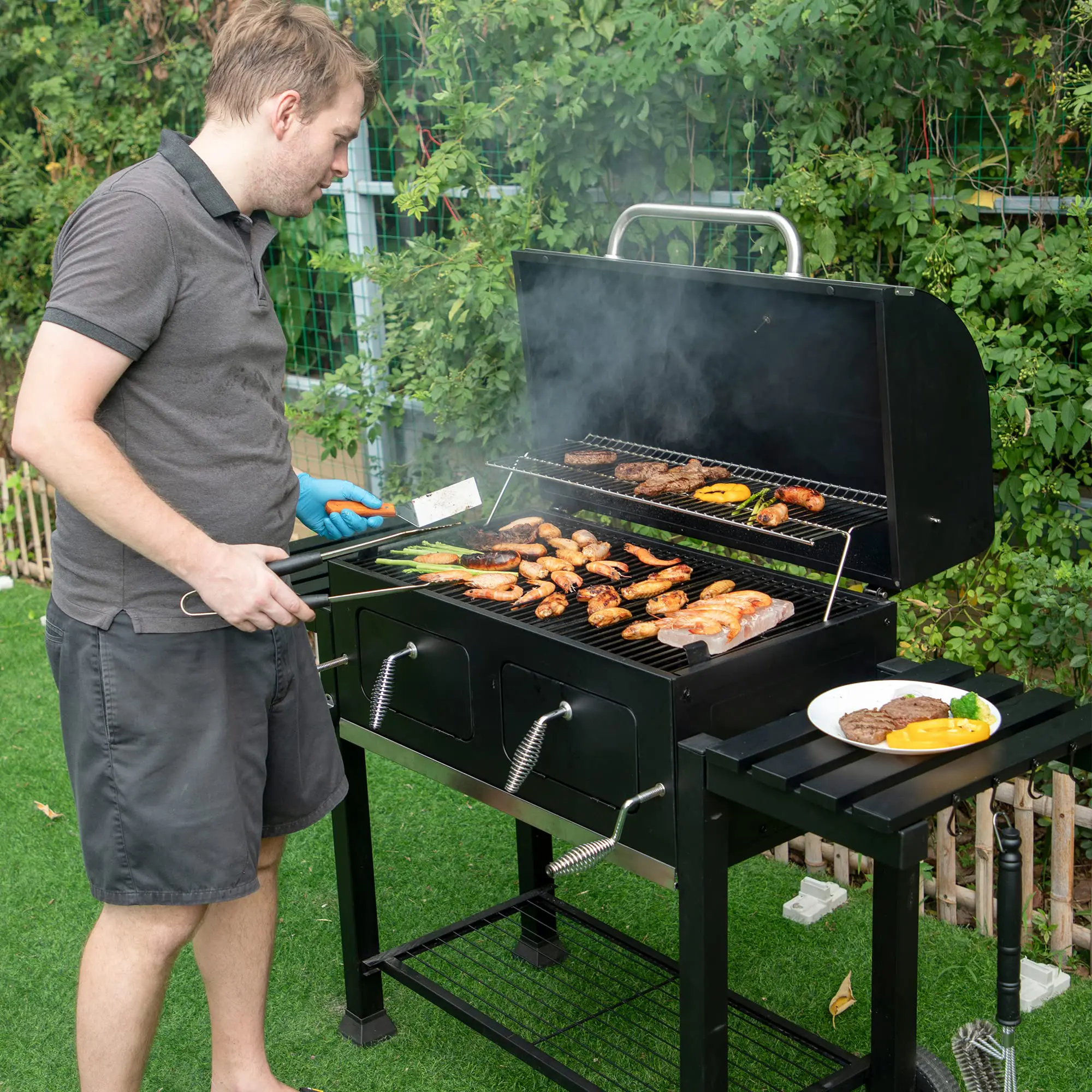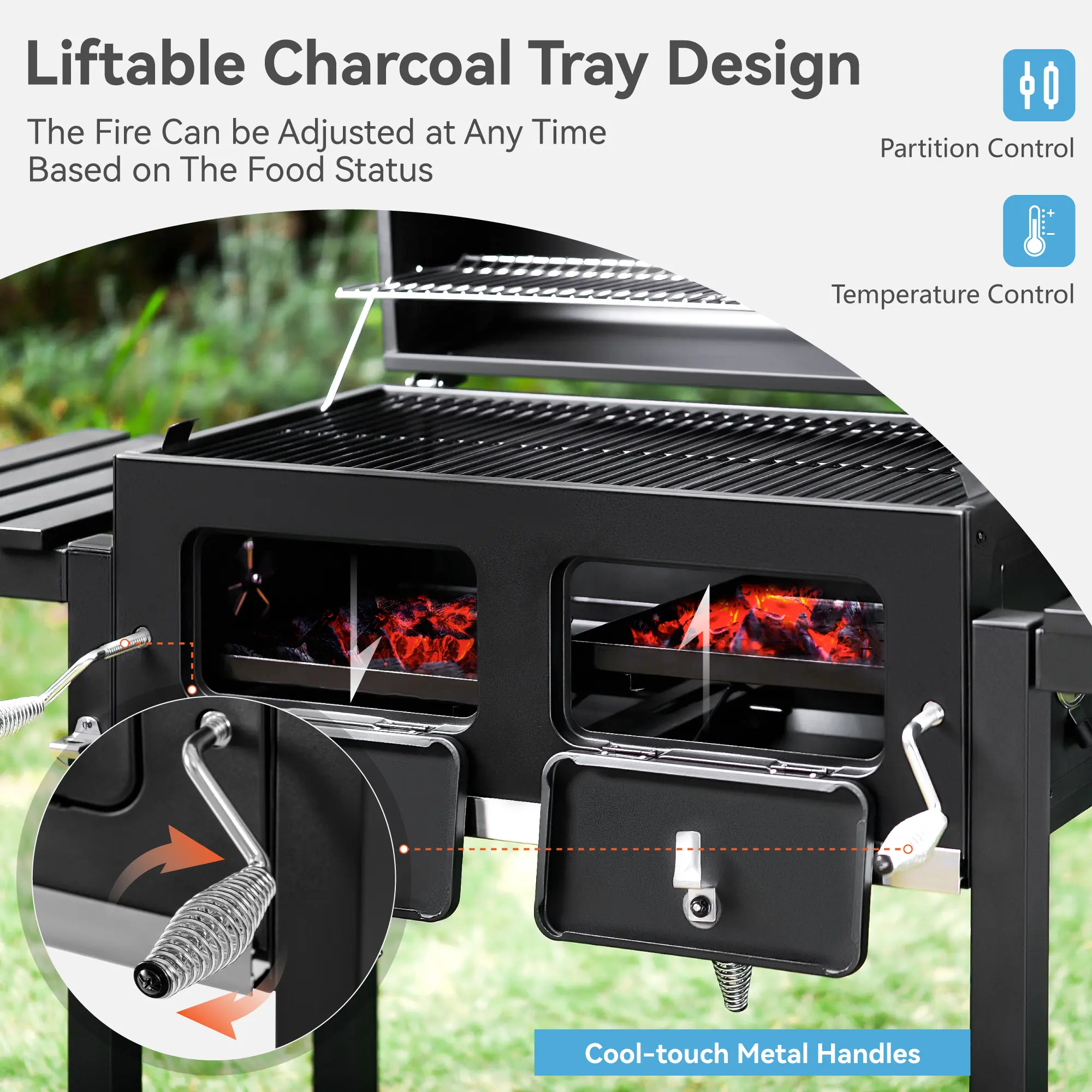 ·Efficient Cooking: The lifting handle on both the left and right side allows for easy control of the charcoal tray, ensuring you can adjust the heat as needed.